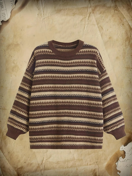 Sixsr Striped Print Knit Sweater, Vintage Crew Neck Long Sleeve Sweater, Women's Clothing