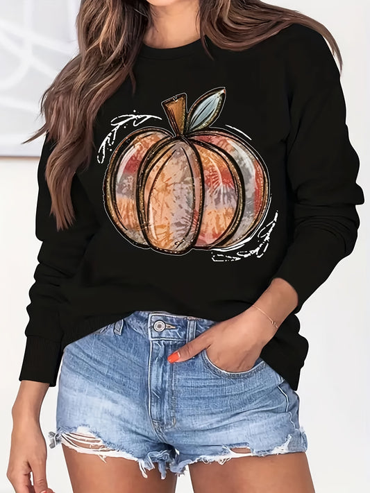 Sixsr Halloween Pumpkin Print Sweatshirt, Casual Long Sleeve Crew Neck Sweatshirt, Women's Clothing