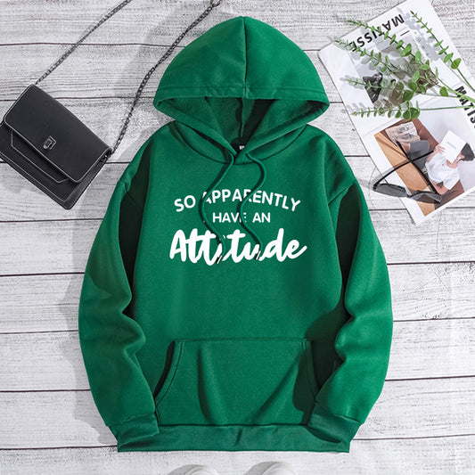 Sixsr I Have An Attitude Print Hoodies, Drawstring Kangaroo Pocket Casual Sweatshirt For Spring & Fall, Women's Clothing