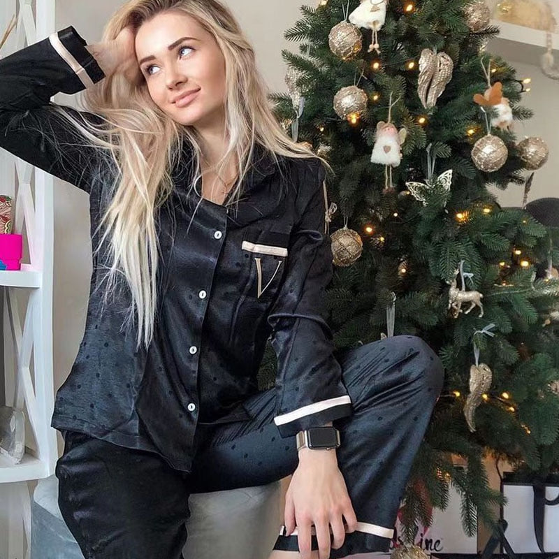 2 Pieces Set Summer Pajamas for Women V Long Satin Silk Sleepwear Ladies Luxury Pyjamas Home Wear Pjs Loungewear