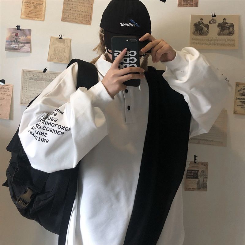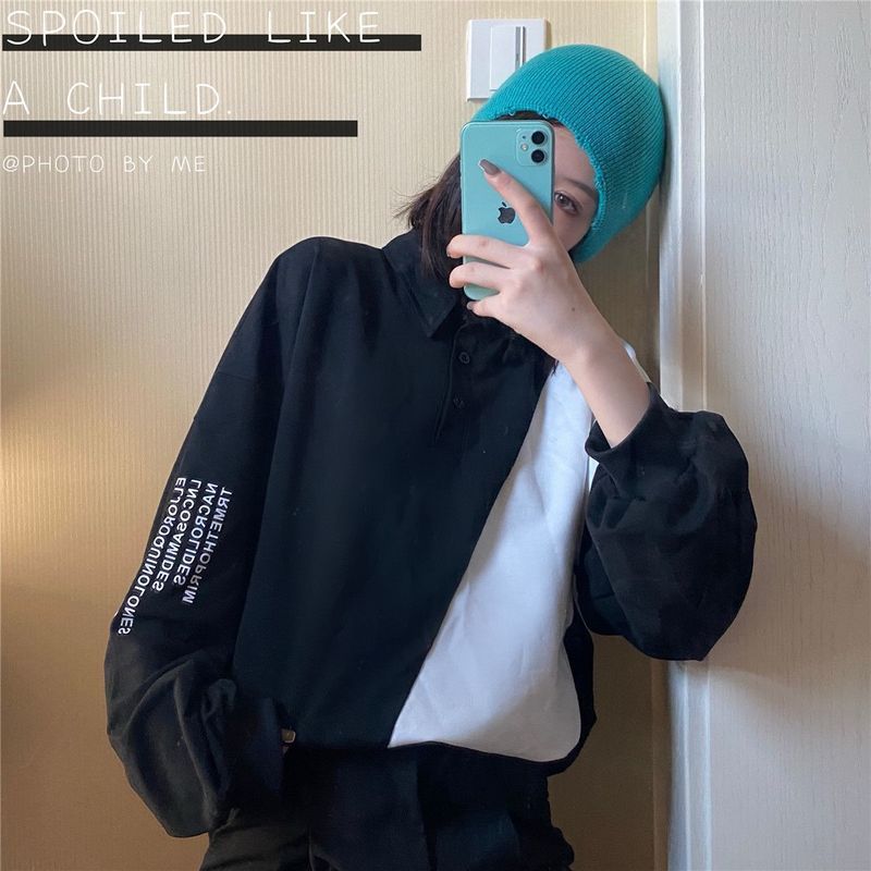 Sixsr new stitching contrast shirt Korean Hong Kong style sweatshirt Preppy hip hop oversize long-sleeved t-shirt men women