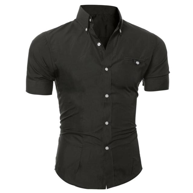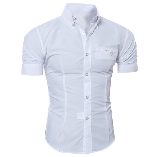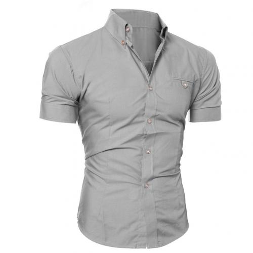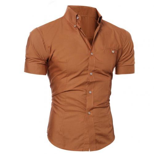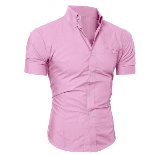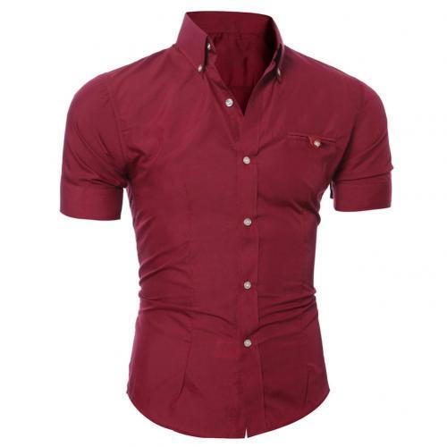 Sixsr New Men's Casual Shirt Fashion Men Solid Color Buttons Down Shirt Short Sleeve Slim Lapel Tops