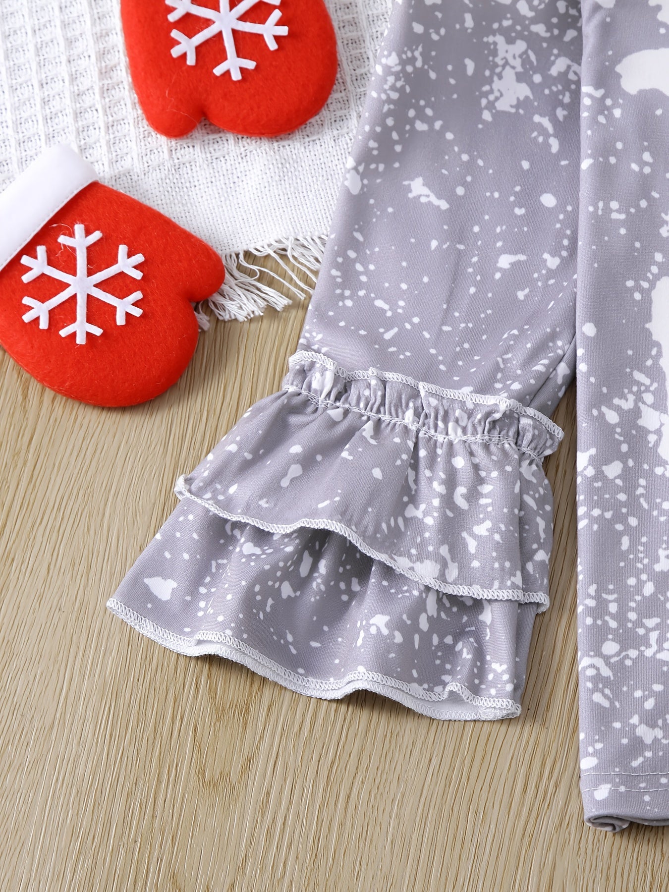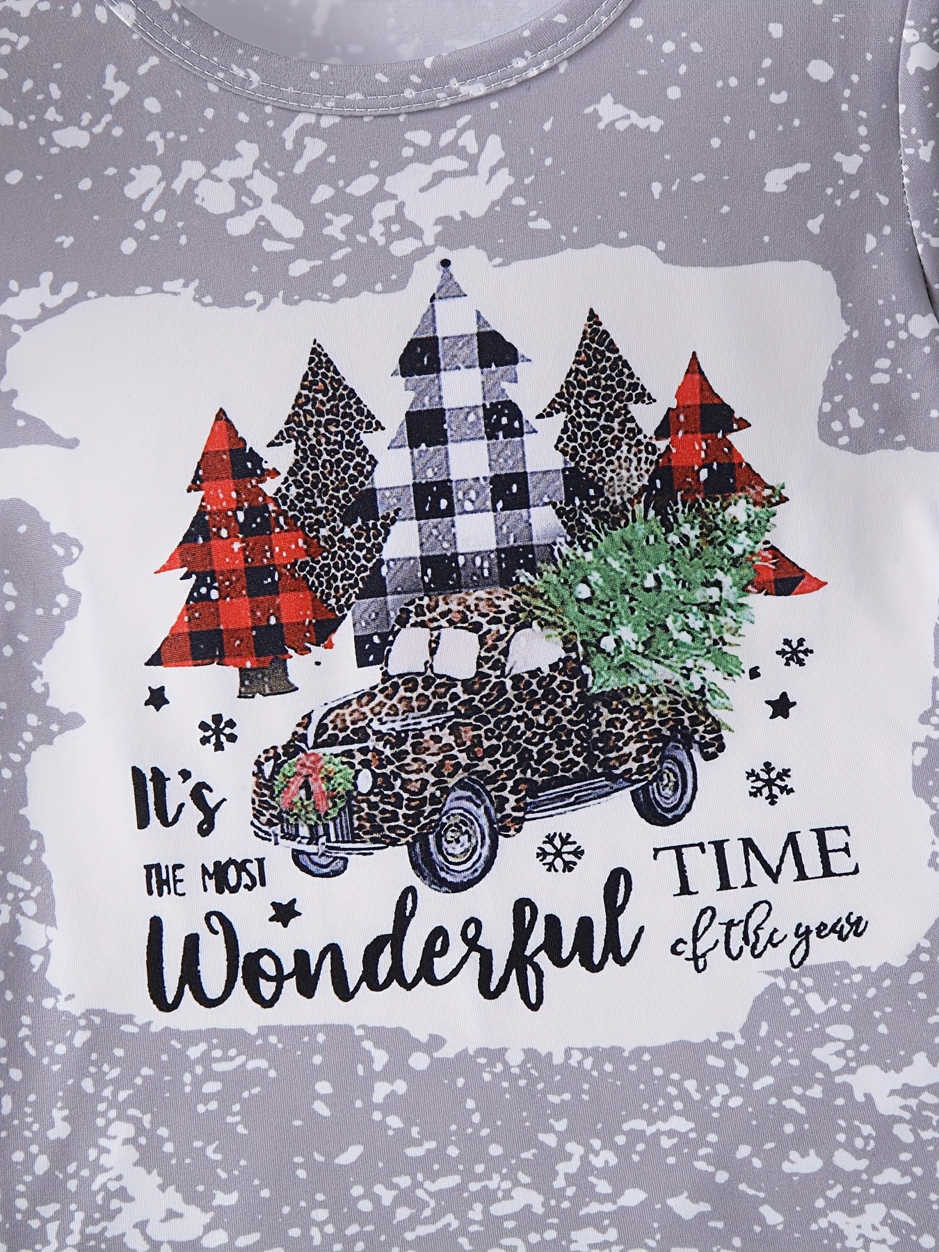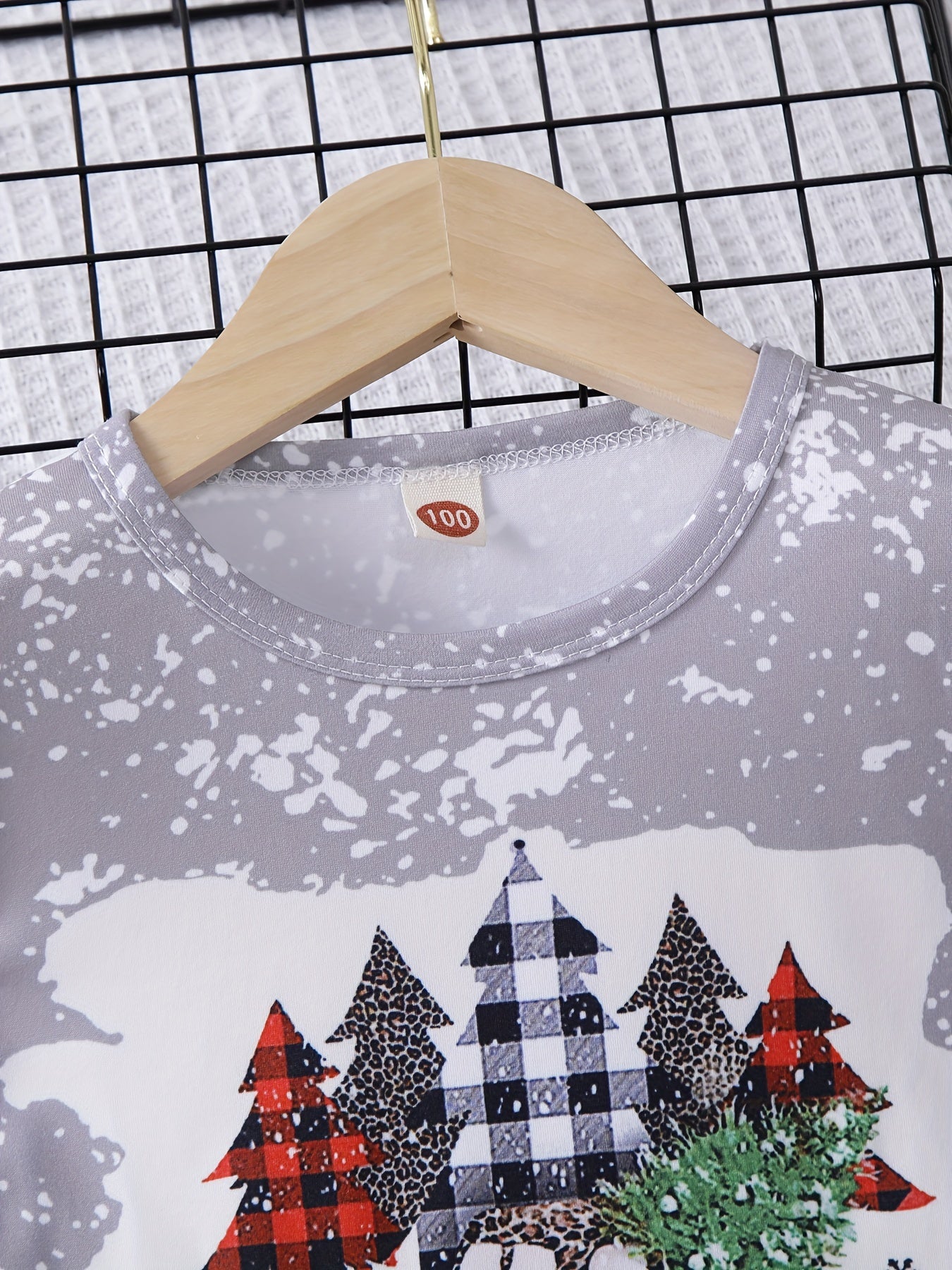 2pcs Girl's Christmas Style Outfit, Trumpet Sleeve Top & Leopard Plaid Pattern Flared Pants Set, Toddler Kid's Clothes For Spring Fall outdoors