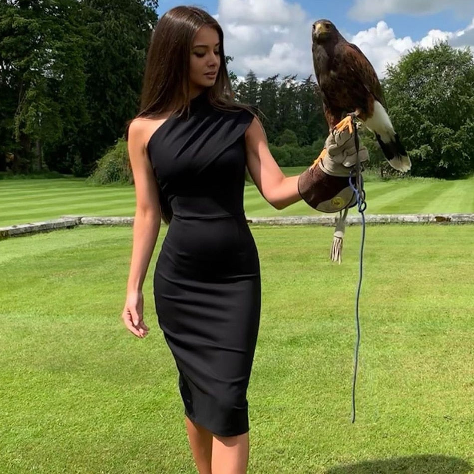 Sixsr New Summer Black One Shoulder Bandage Dress Women Sexy Sleeveless Bodycon Club Celebrity Evening Party Dress Vestidos