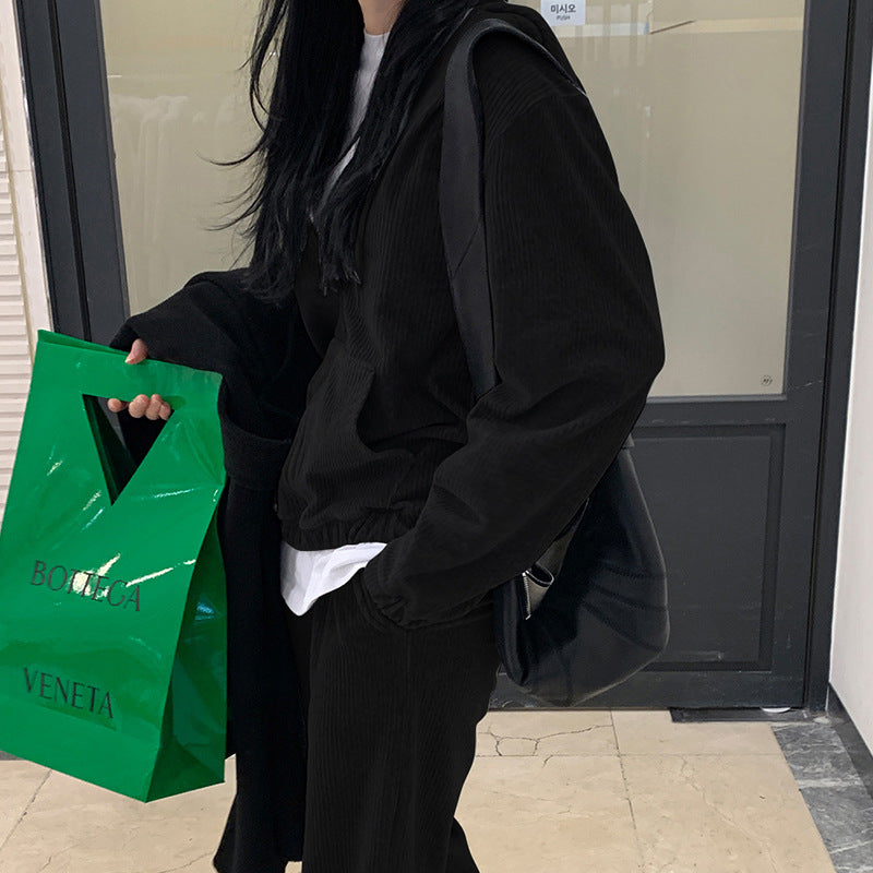 autumn and winter new simple and versatile suit corduroy hooded cardigan long-sleeved Korean sweater two-piece women's clothing