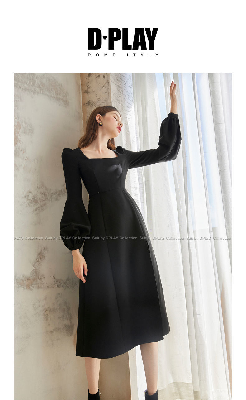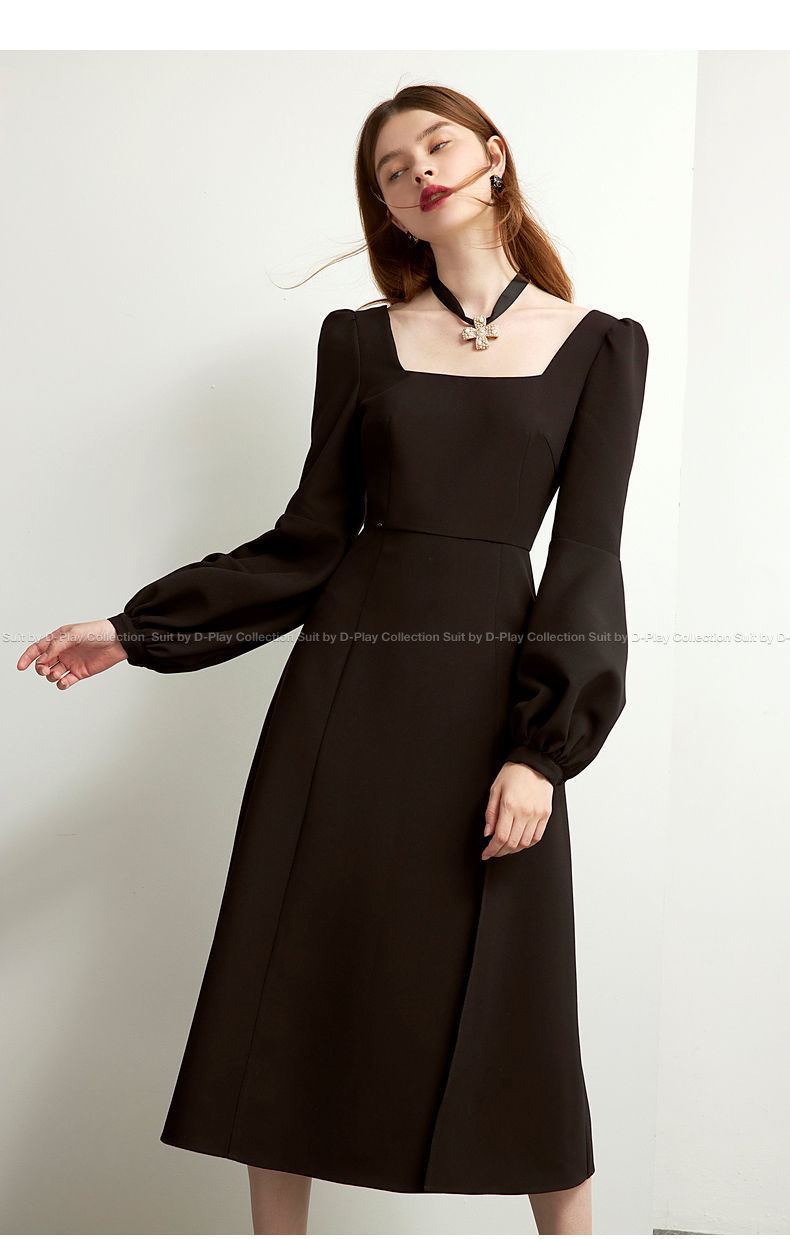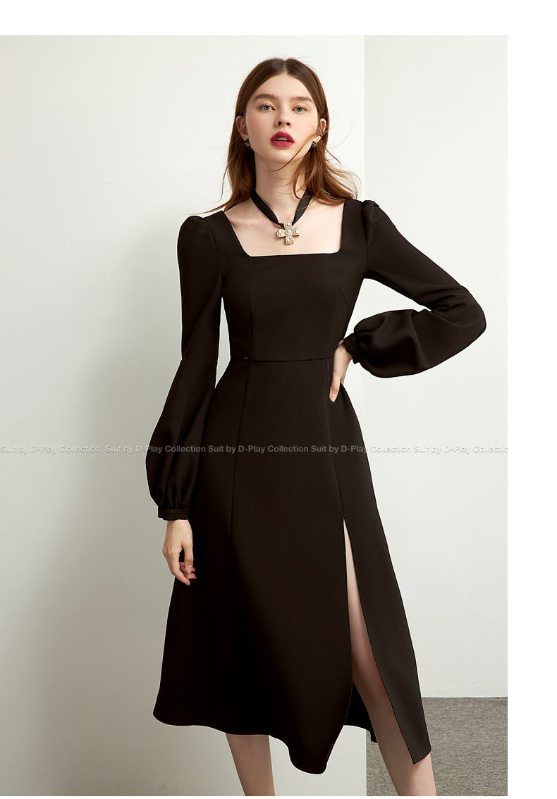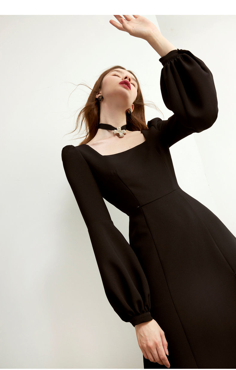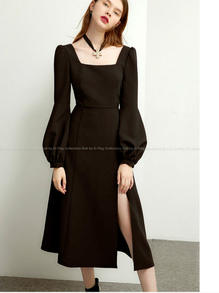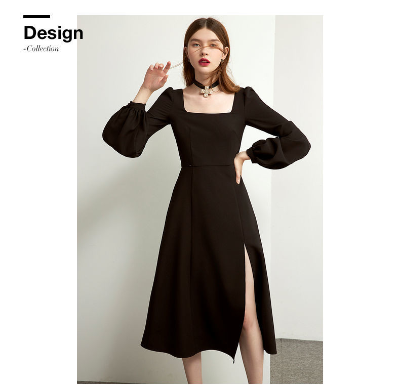 Sixsr Black Retro Split Dress Women Elegant Midi Designer Dress Female Long Sleeve Hepburn Style Chiffon Vintage Dress Fall Women