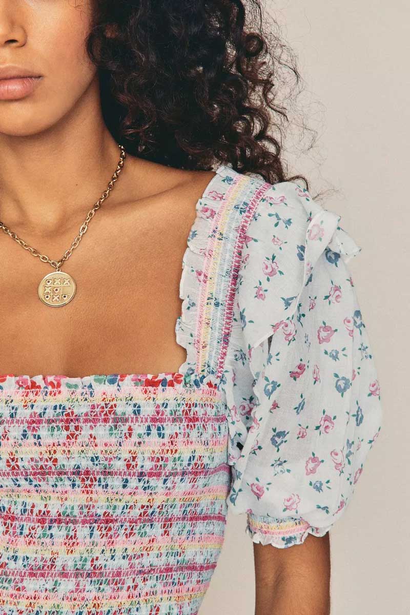 Sixsr Inspired mixed floral prints ruffled party dress puff sleeve square neck smocked sexy laides dress mini chic summer dress