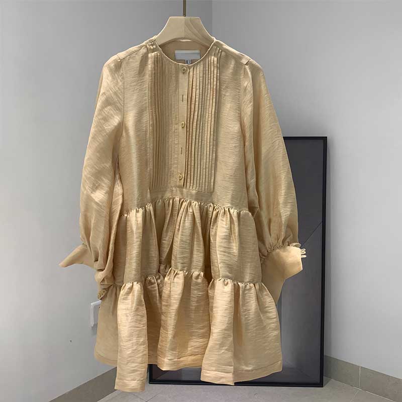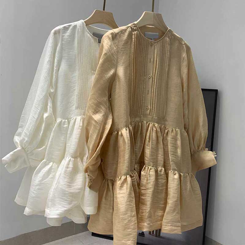 Sixsr pleating women dress long sleeve spring autumn dress fashion ladies dress pockets mini sexy dress women