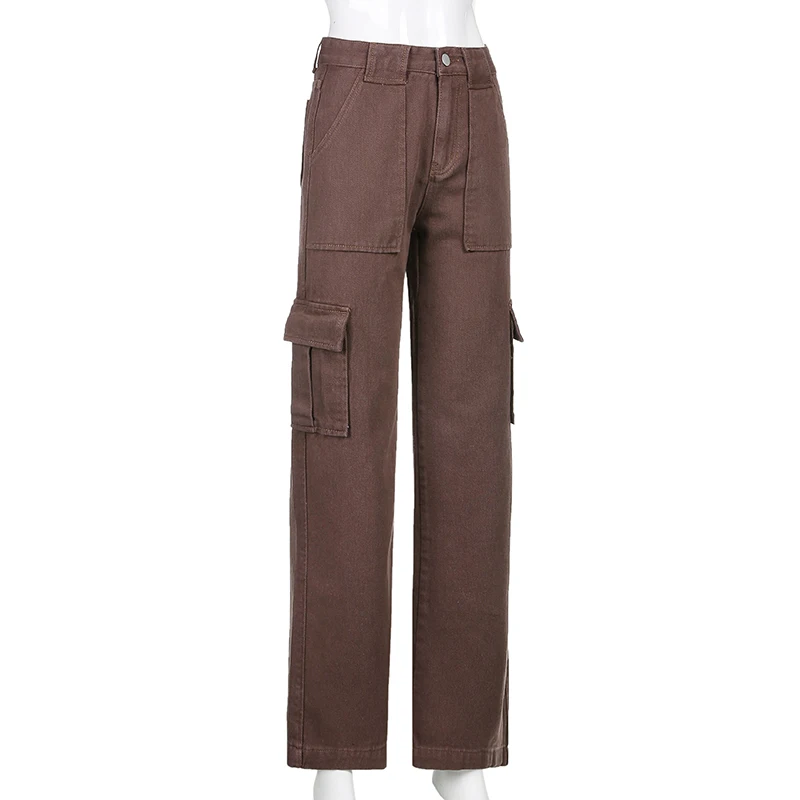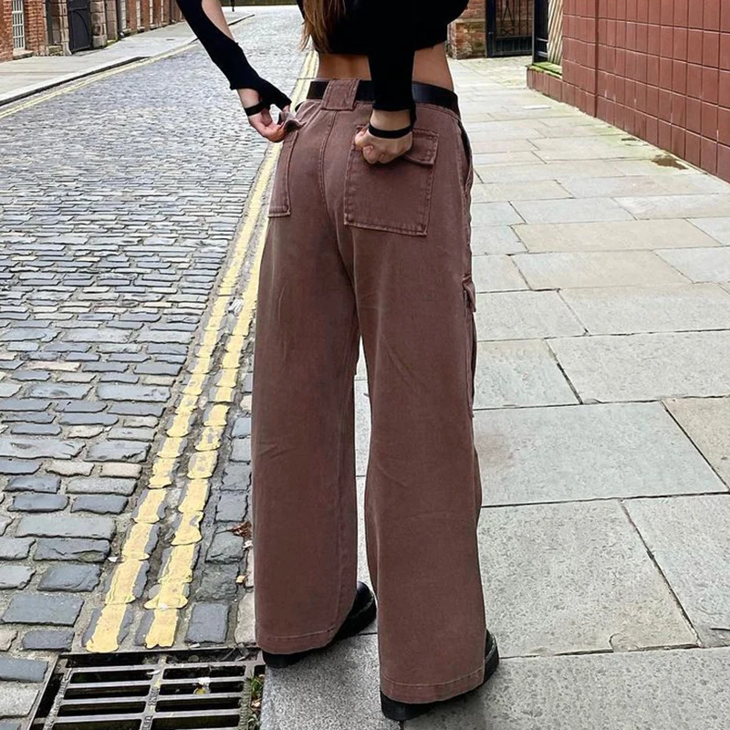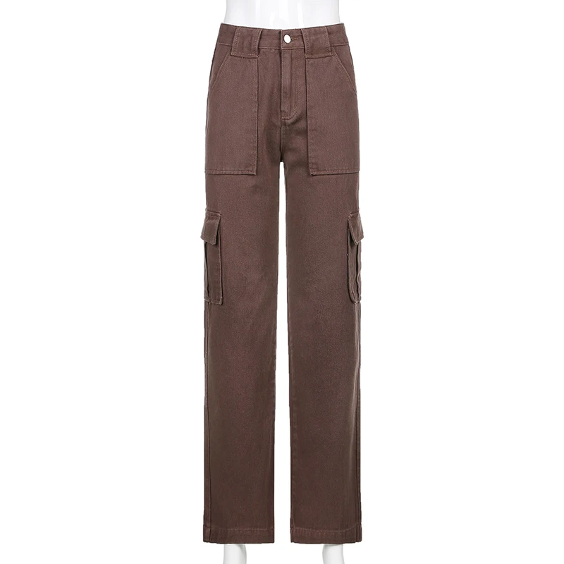Brown Vintage Baggy Jeans Women 90s Streetwear