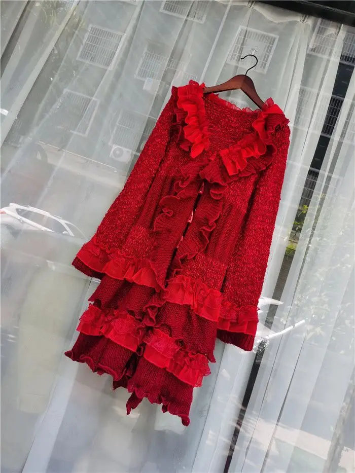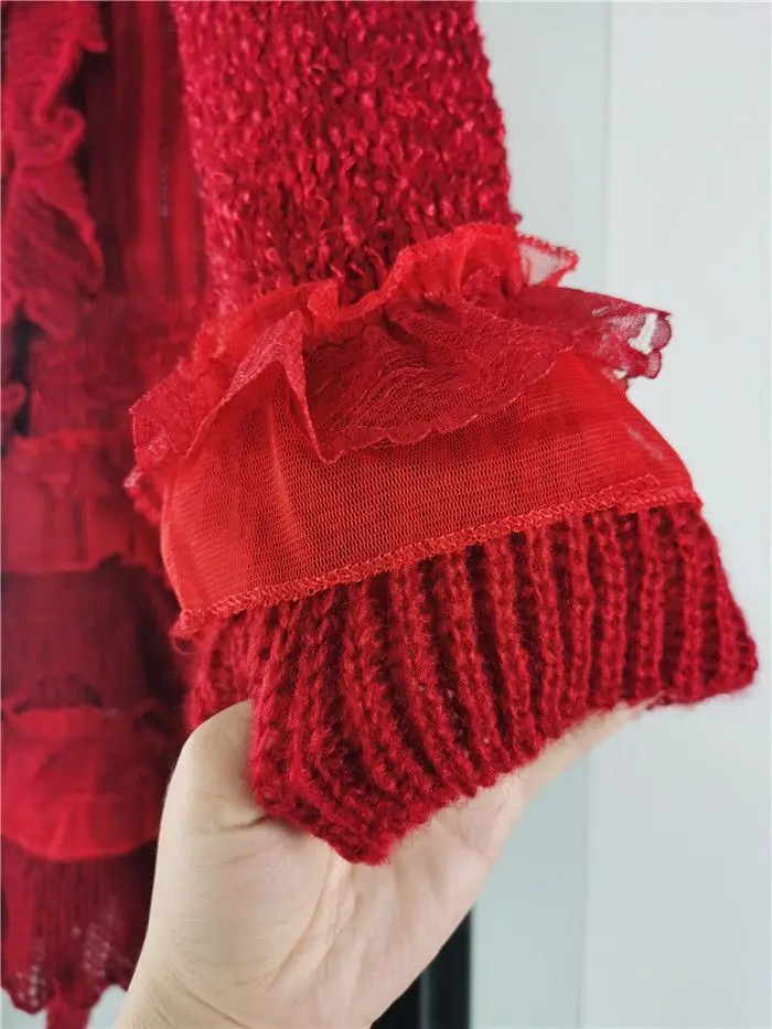 Cardigan Sweater Women's Knitted Single-breasted Lace Bell Sleeve Mid-length Coat