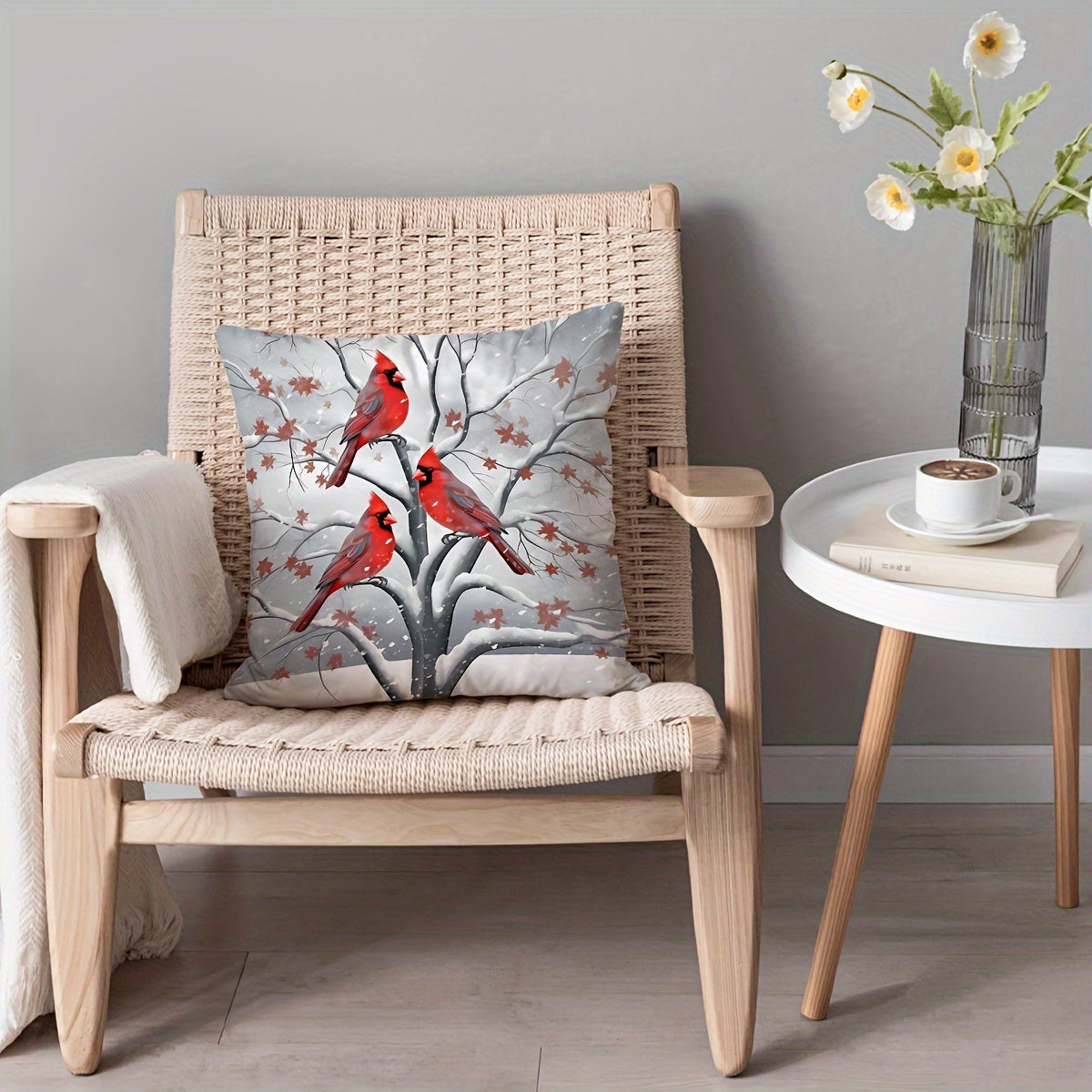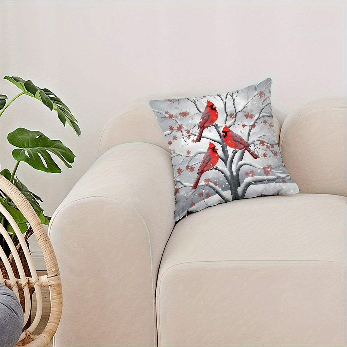 Christmas Charm Pillow Cover 17.7" - Festive Tree, Snowman & Bird Design | Soft Polyester, Zip Closure | Perfect for Sofa & Bedroom Decor, Christmas Decor