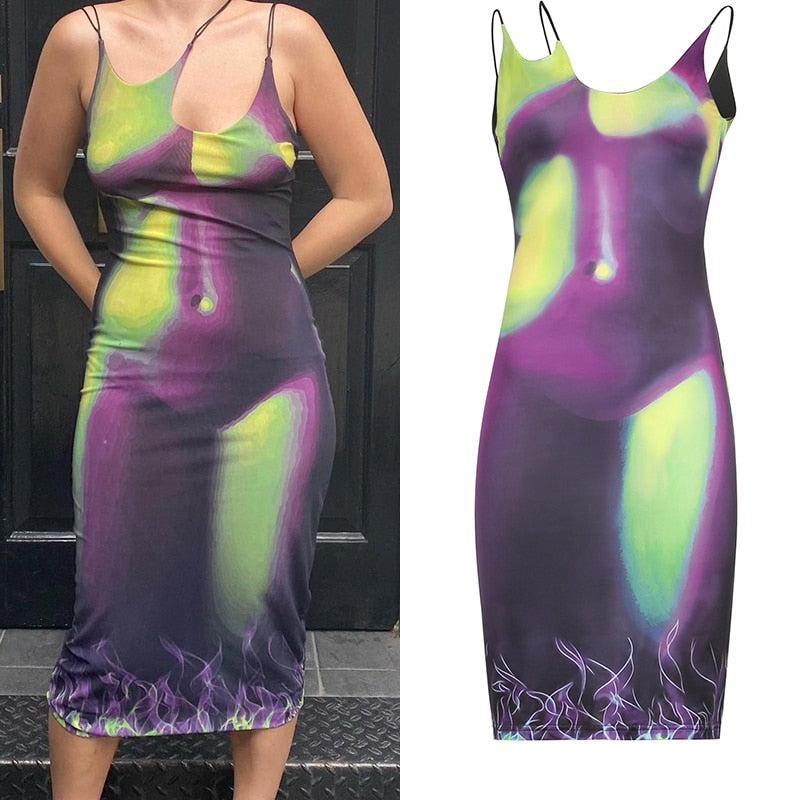 Sixsr Hipster Bodycon Print Irregular Dress Women Sexy Sleeveless Sheath Body-Shaping Dresses Ladies Vintage Fashion Clubwear