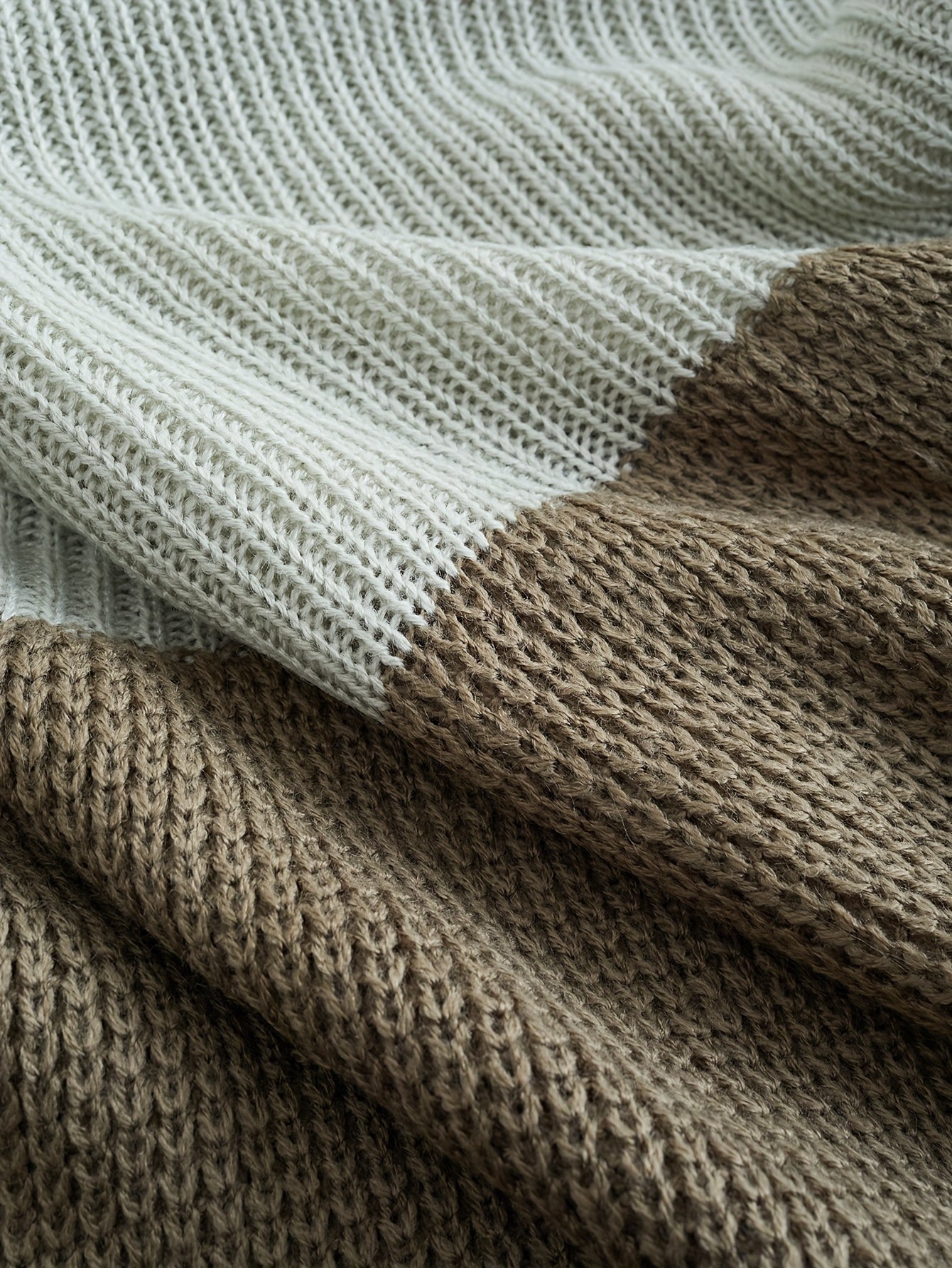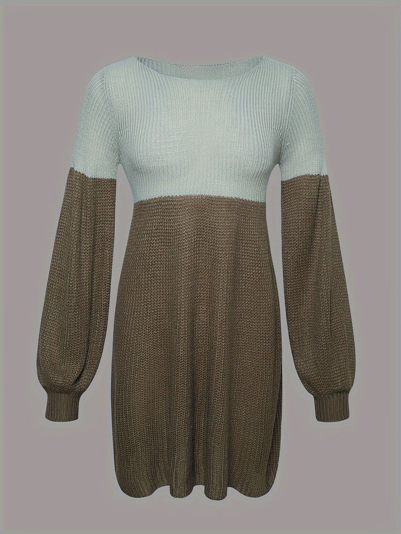 Color Block Crew Neck Sweater Dress, Causal Long Sleeve Ruffle Hem Knitted Dress, Women's Clothing