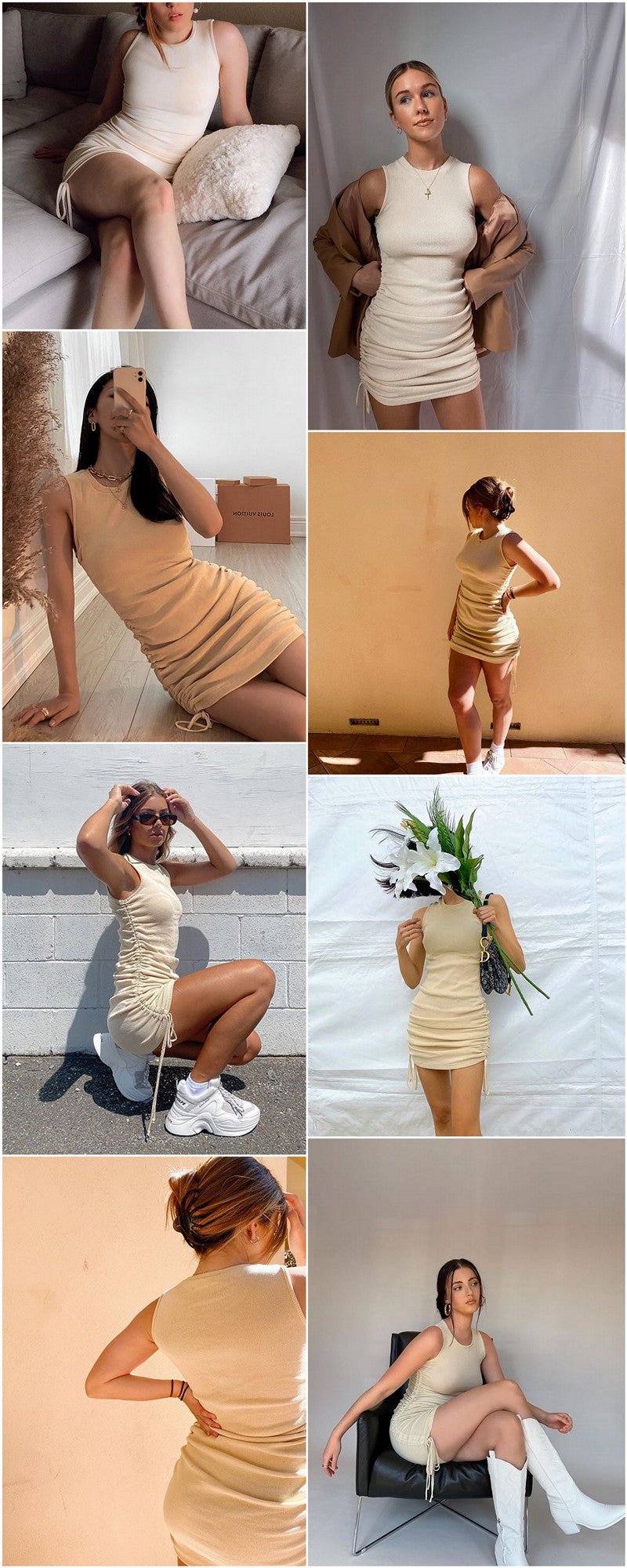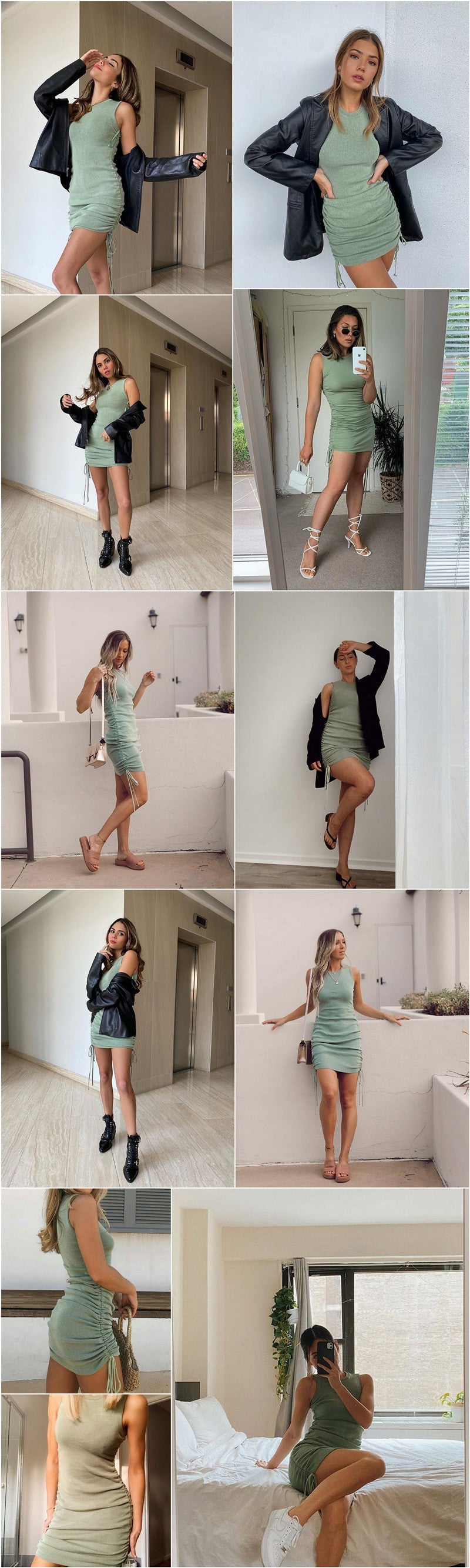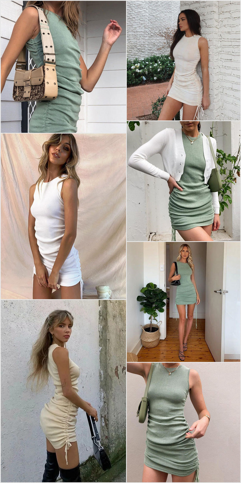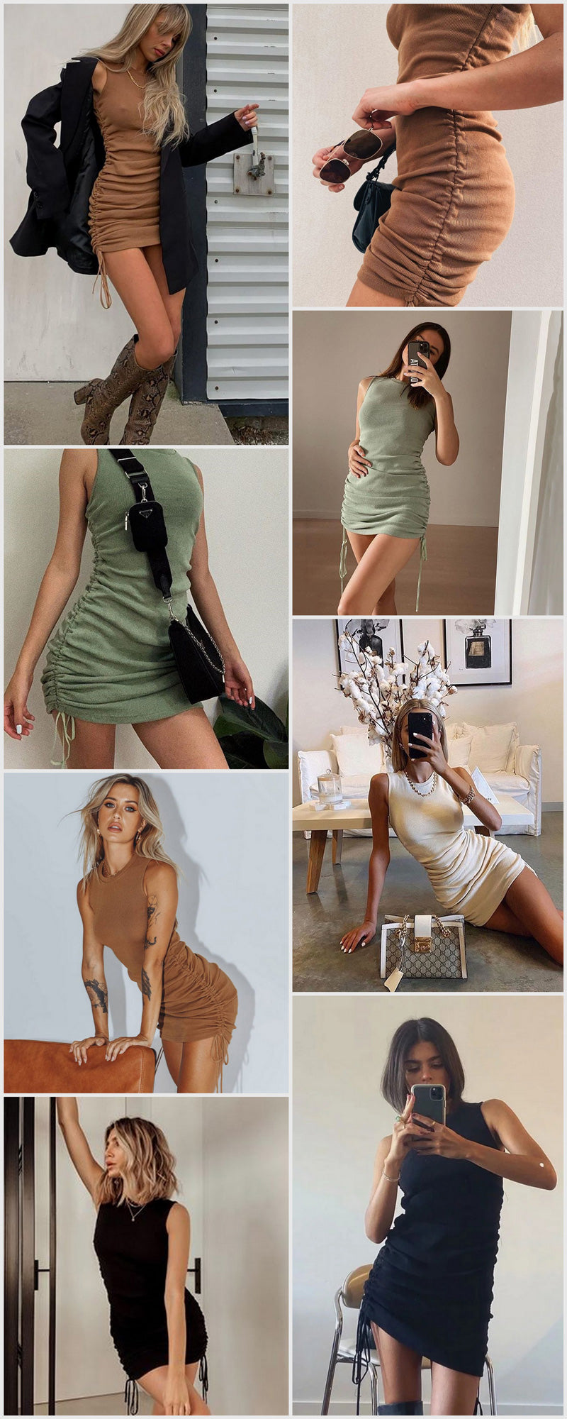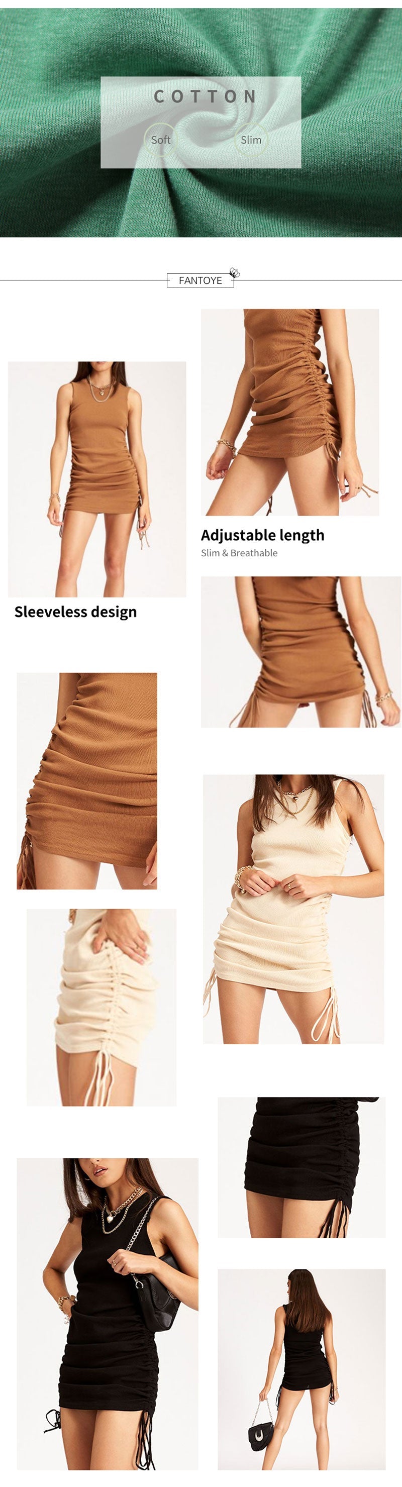 Sixsr Cotton Ruched Drawstring Sexy Party Dress Women Sleeveless Elastic Mini Dress Vintage Summer Bodycon Club Wear Vestidos