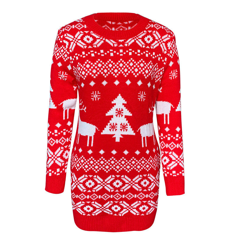 Sixsr Fashion Autumn Winter Long Sleeve Loose Christmas Dresses Ladies Christmas Print A-line Mini Dress tops New Women