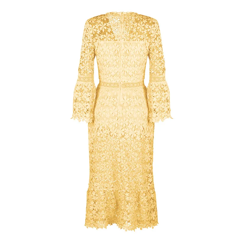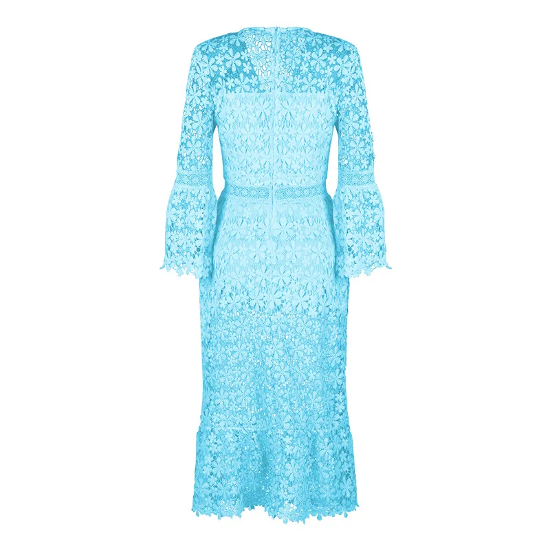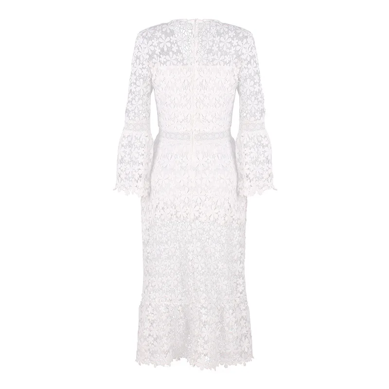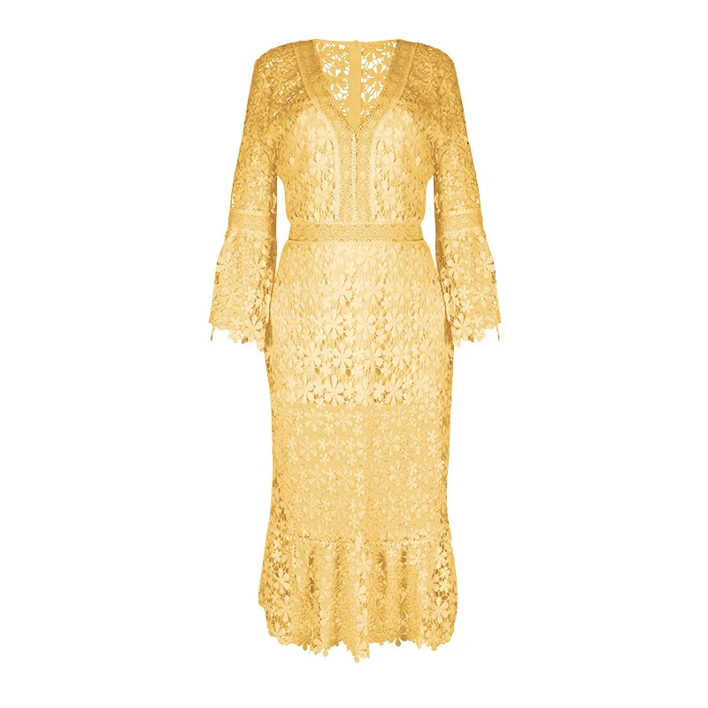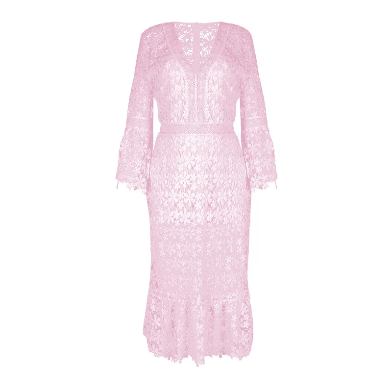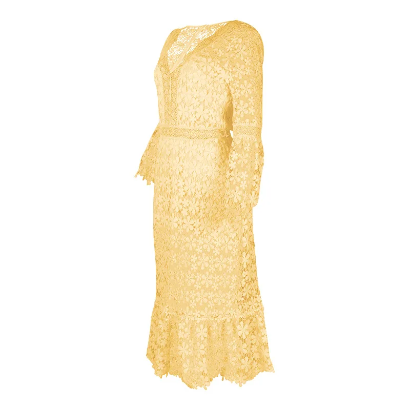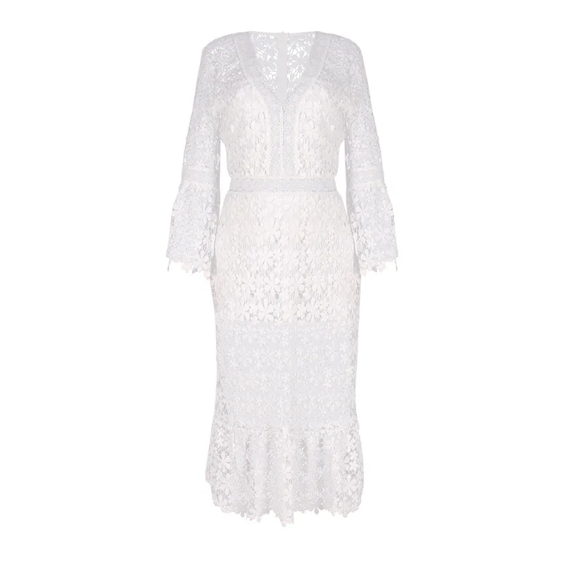 sixsr Fashionable Autumn Women Dress Sexy Lace Long-sleeved V-neck Large-length Ladies Chic Vestidos Wedding Party Bridal Dress