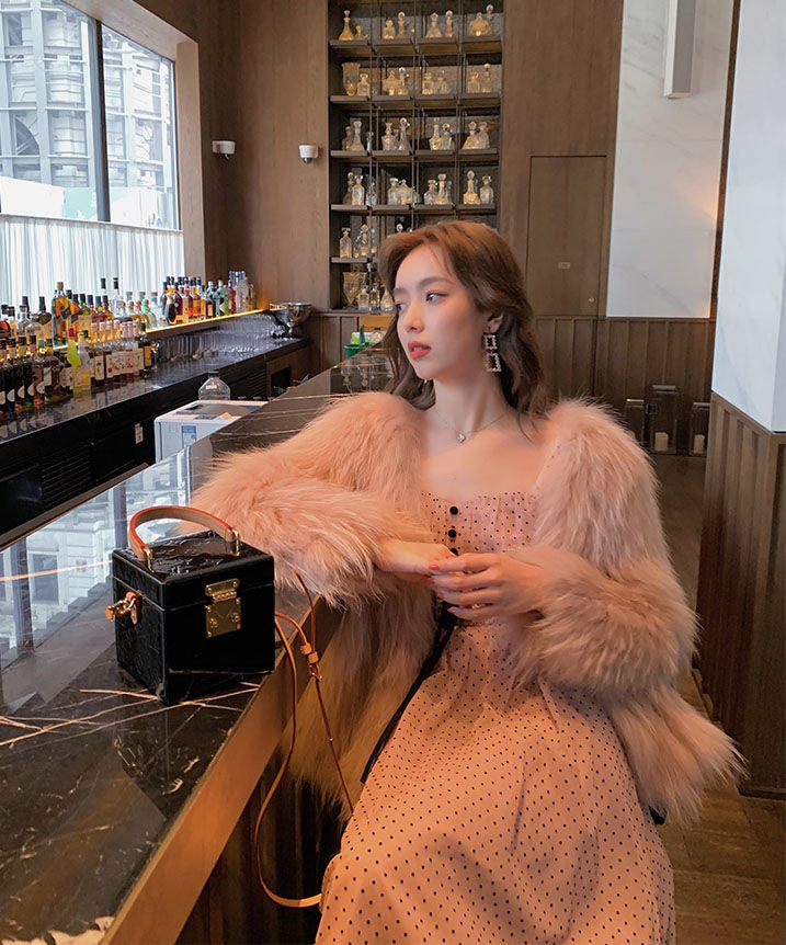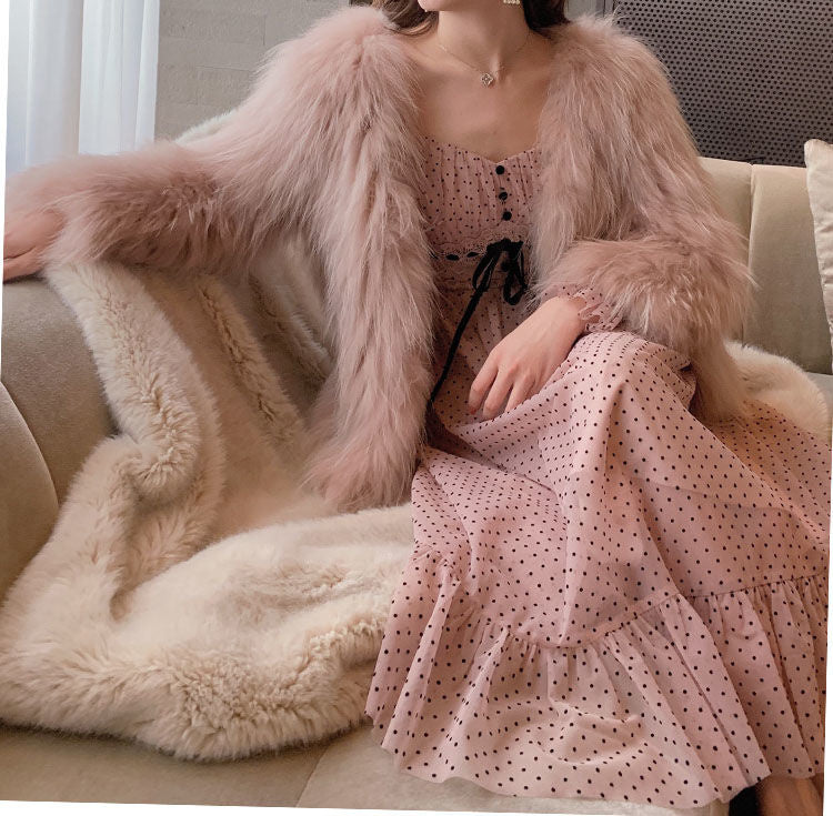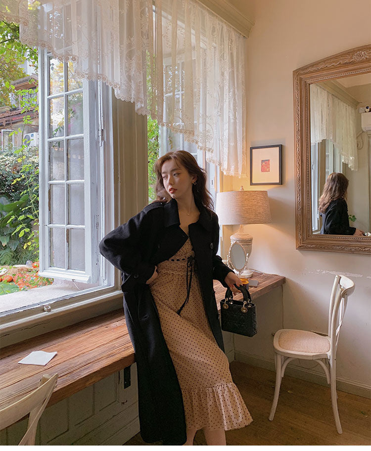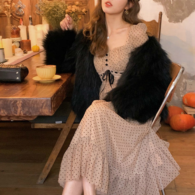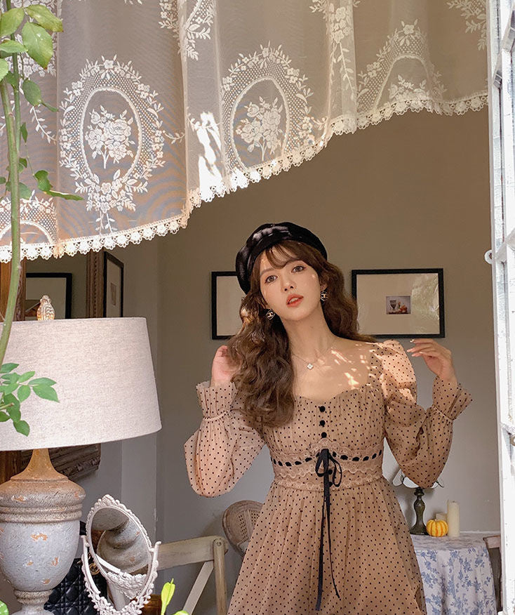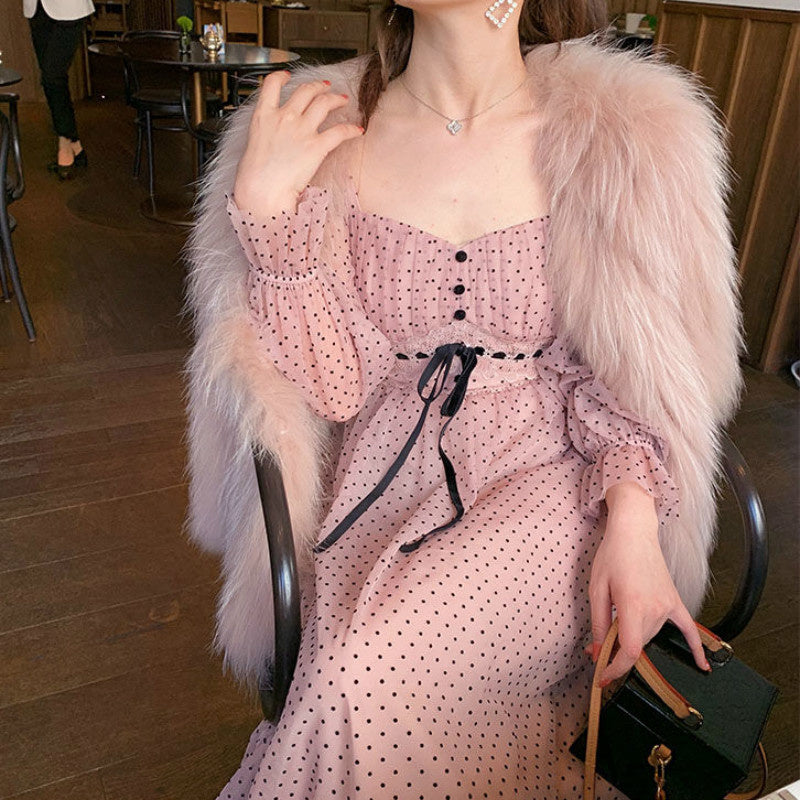 Sixsr French Vintage Midi Dress Women Puffer Sleeve Square Collor Office Elegant Dress Female Spring Dot One Piece Dress Korean