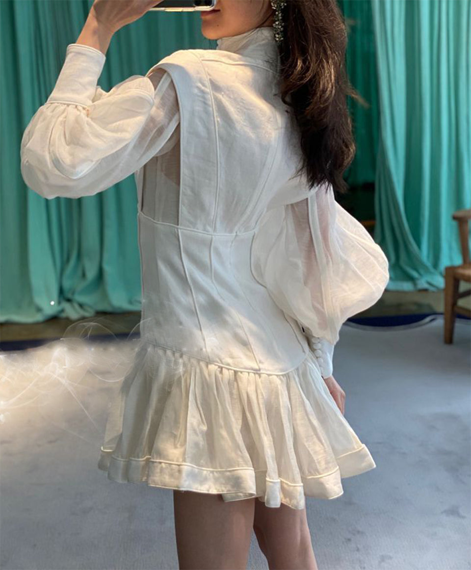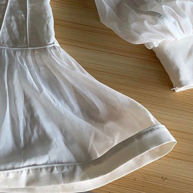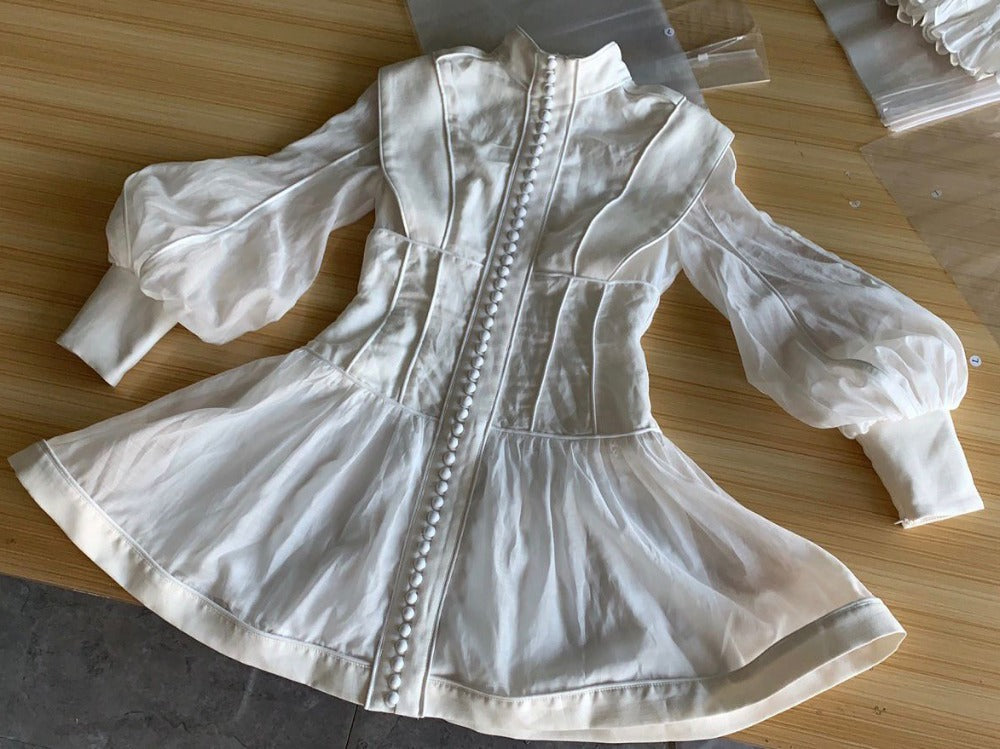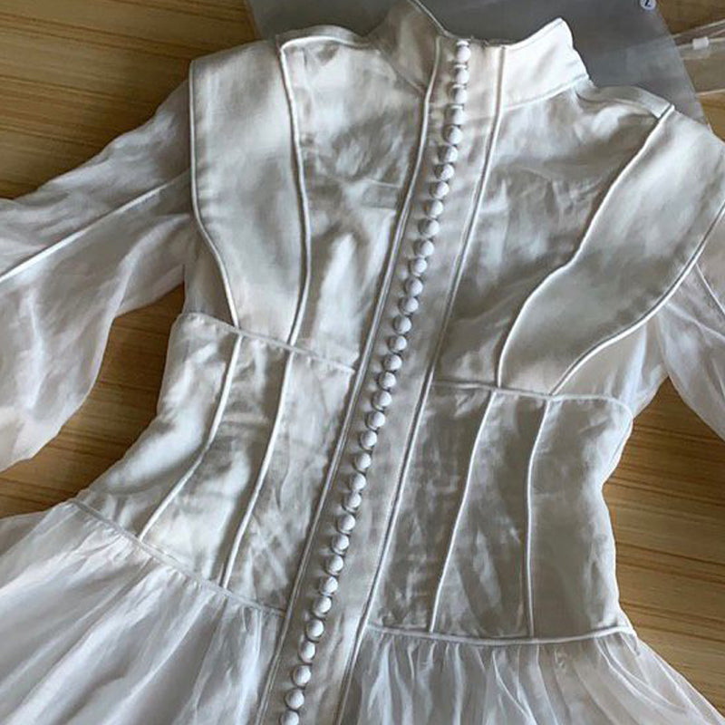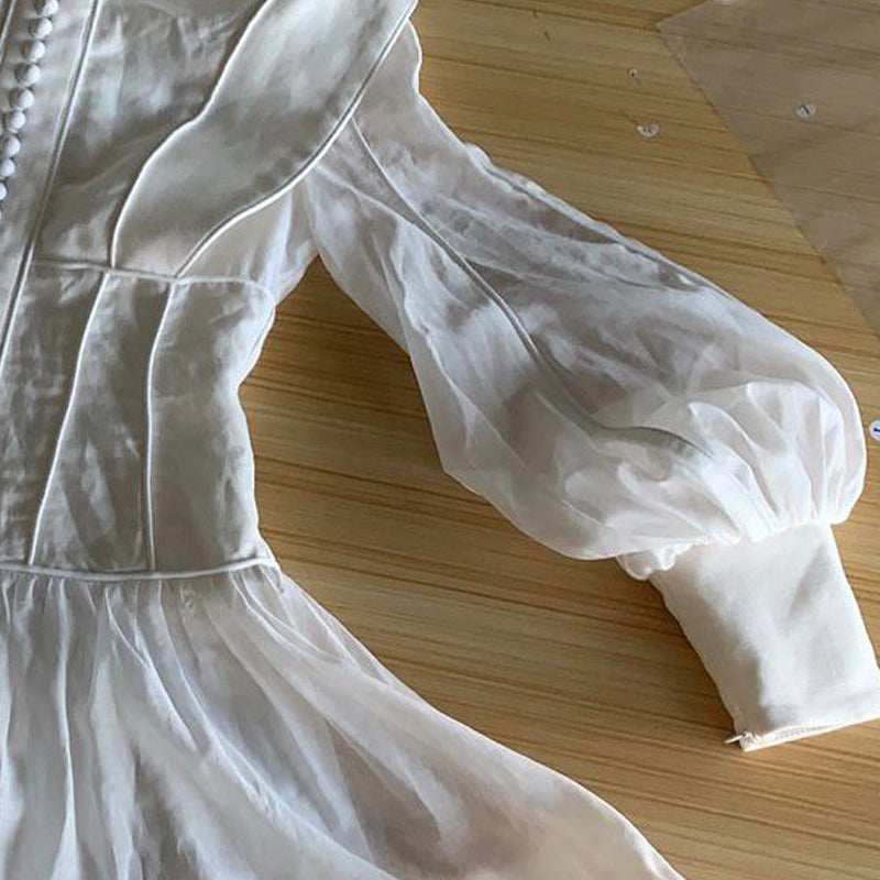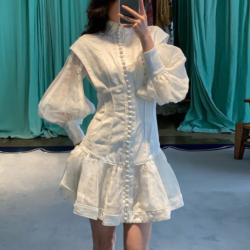 Sixsr High-end Custom Fashion runway Dresses Stereoscopic cut slender button with bubble sleeves ladies dress