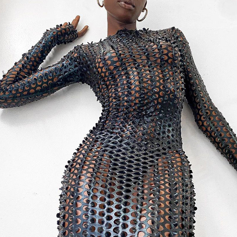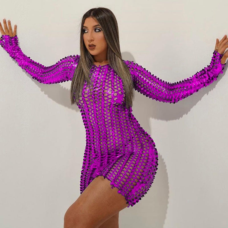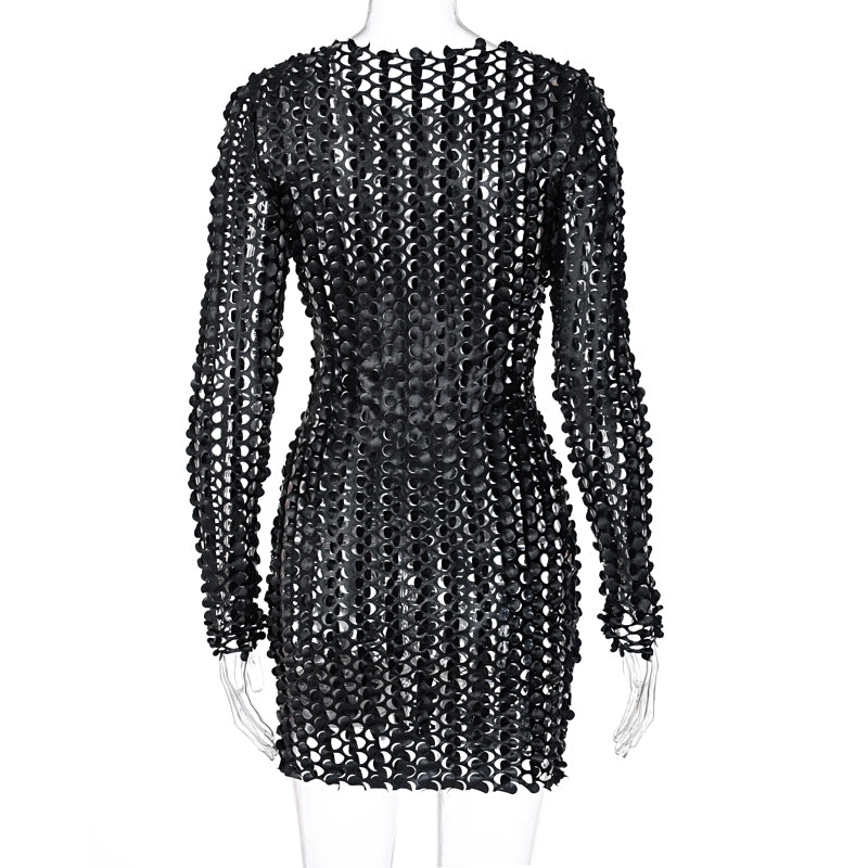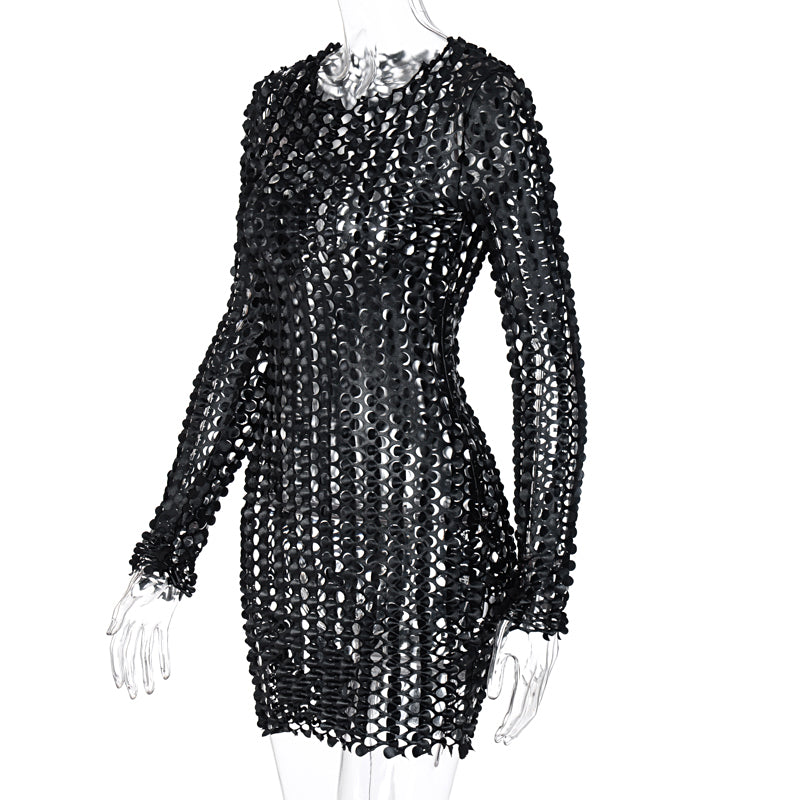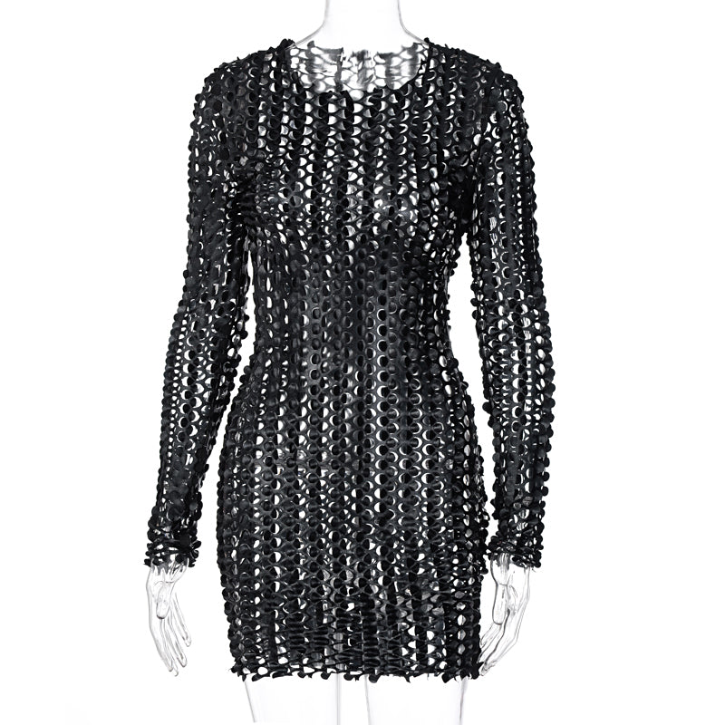 Sixsr Long Sleeve Cut Out Solid Skinny Sexy Mini Dress Autumn Winter Women Fashion Party Club Elegant Outfits