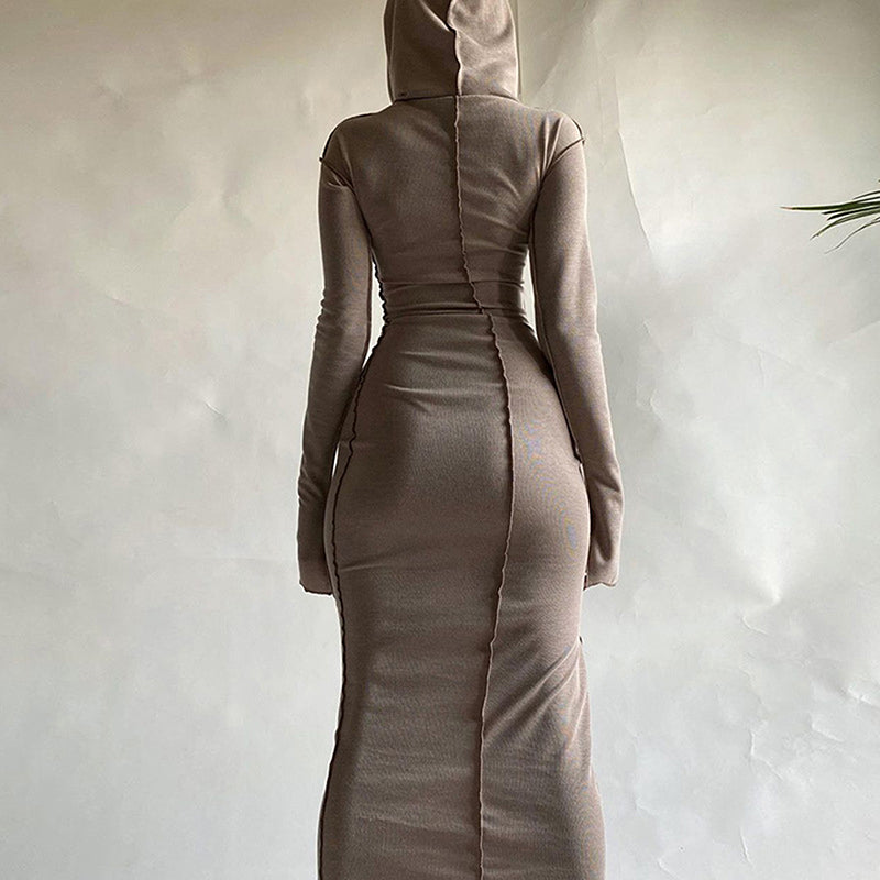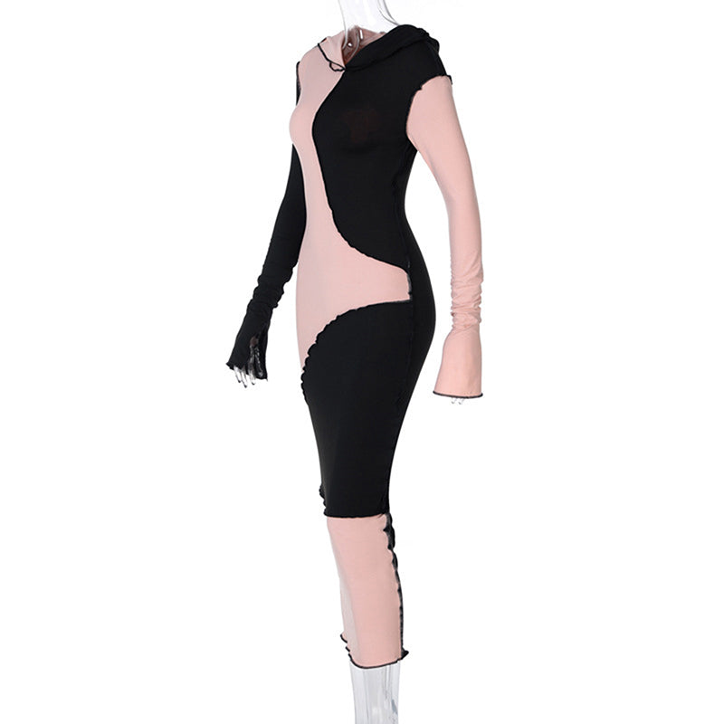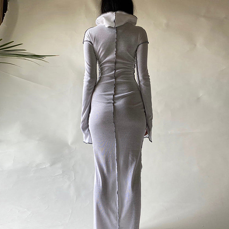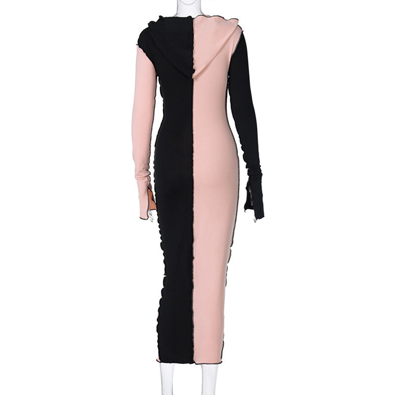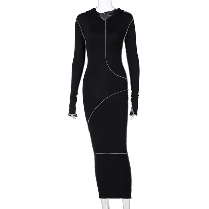 Sixsr Long Sleeve Hooded Patchwork Skinny Maxi Dress Autumn Winter Women Fashion Streetwear Casual Outfits