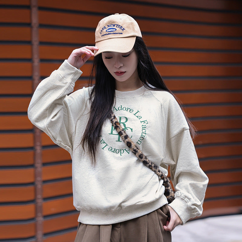 Japan and Korea casual round neck long-sleeved jumper autumn and winter atmosphere contrasting top letter printing versatile pure cotton sweater