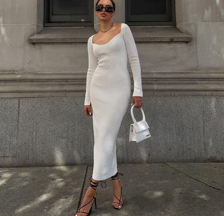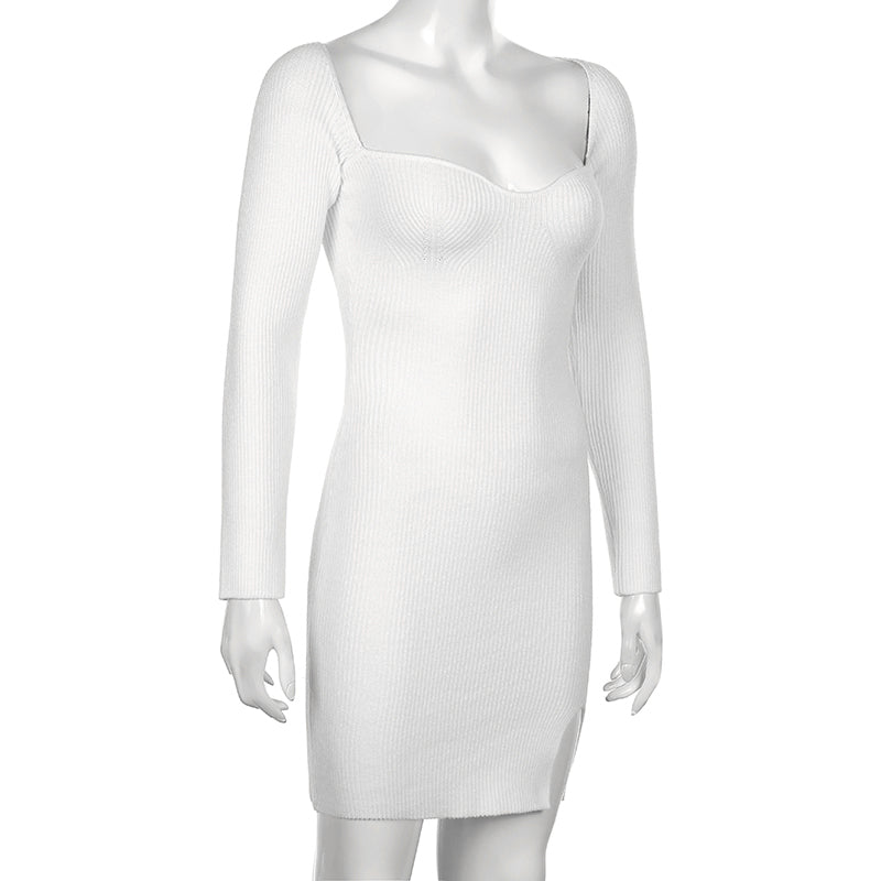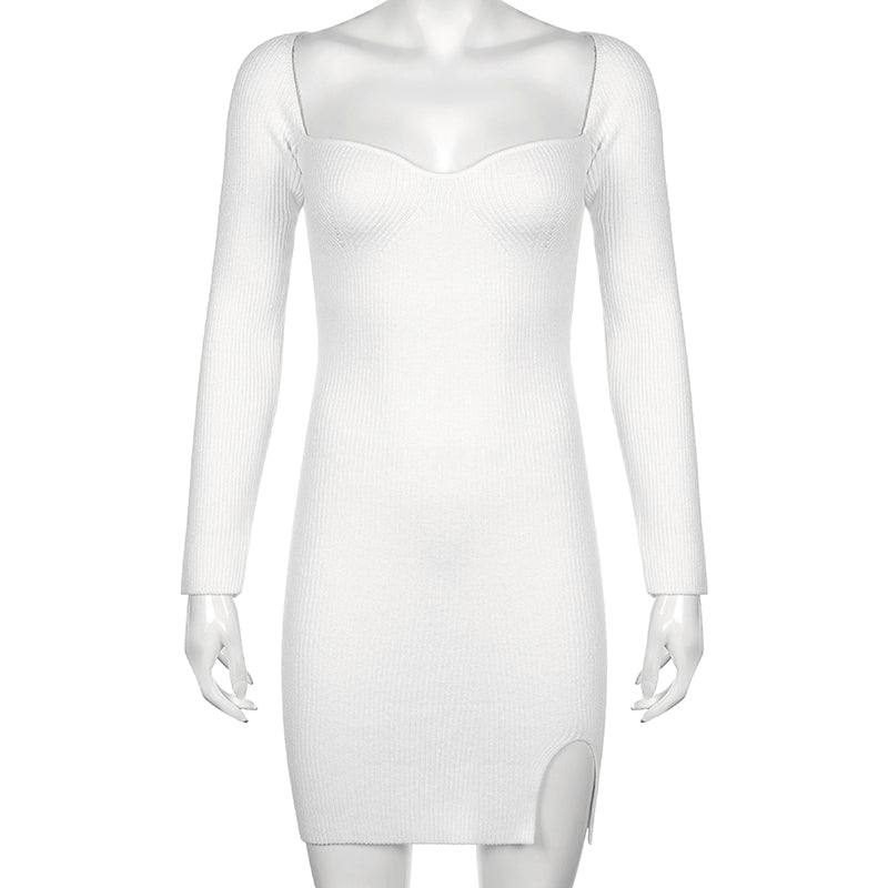 Sixsr Bodycon Knitted Women Sweater Dress Long Sleeve Sexy Off Shoulder Split Elegant Party Dresses Fashion Autumn Winter