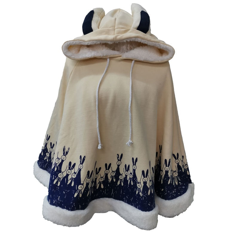 Sixsr Lolita Cloak Harajuku Hoody Cloak Japanese Angry Cat Christmas Deer Fleece Cape Loose Pullover Batwing Sleeve Hoodie Coat