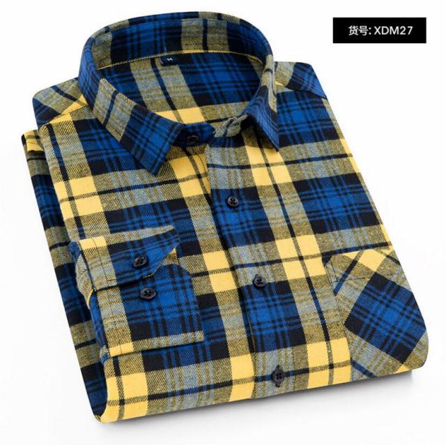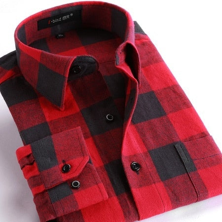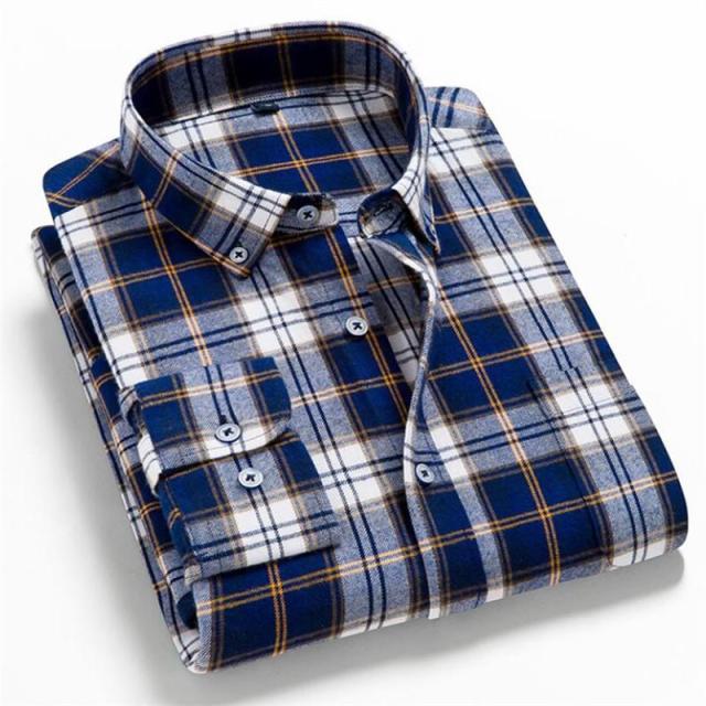 Men's Plaid Cotton Shirt Chest Pocket Smart Casual Classic Contrast Standard-fit Long Sleeve Dress Shirts