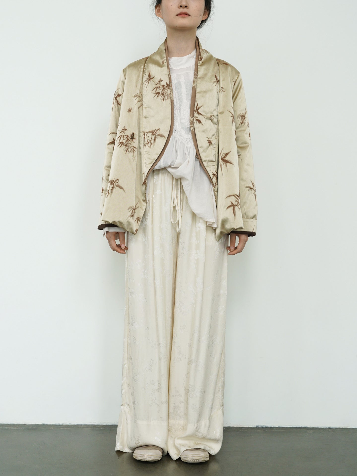 national style new Chinese style human silk luster diagonal placket thickened cotton-padded jacket bamboo leaf jacquard warm cotton-padded jacket M24357