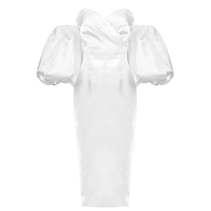 sixsr New Fashion Black Sexy Dress Summer Women's Top V-neck Strapless Puff Sleeve Midi Club Elegant Party Evening Dress Vestido