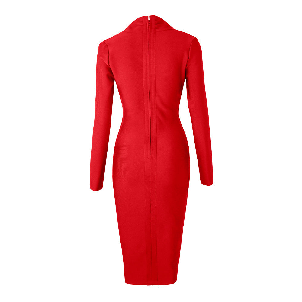 Sixsr New Summer Deep V Neck Women Bandage Dress Full Sleeves Celebrity Bodycon Dress Sexy Club Vestidos Evening Party Dresses