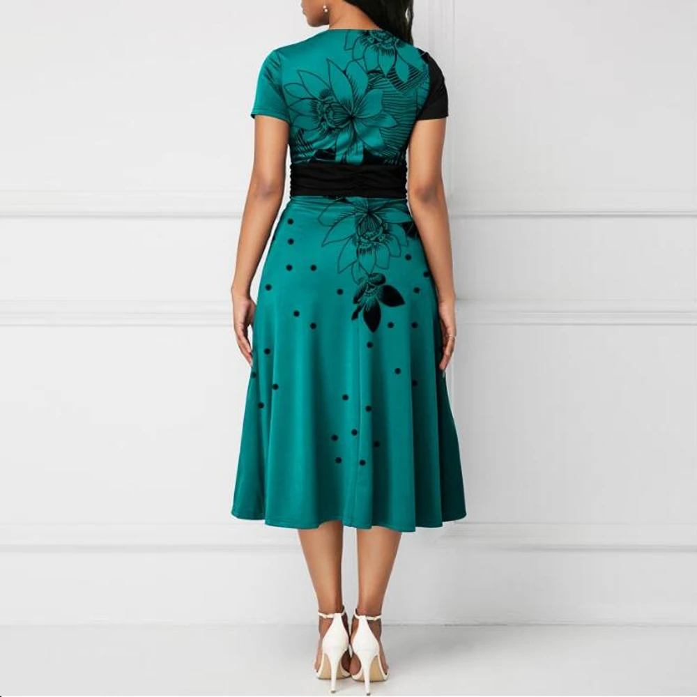 New Trends Retro Women High Waist Irregular Midi Dresses Summer Fashion V-neck Short Sleeve A-line Party Dress Elegant Office Lady Vestidos