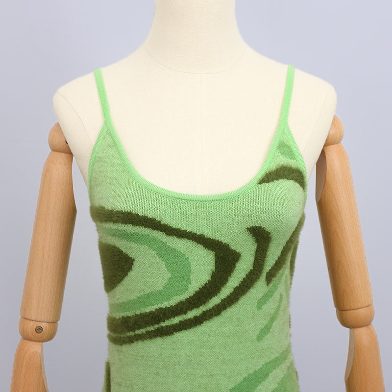 Sixsr Paisley Print Knit Dress Women Green Y2K Summer Sexy Bodycon Sleeveless Spaghetti Strap Beach Party Midi Dresses