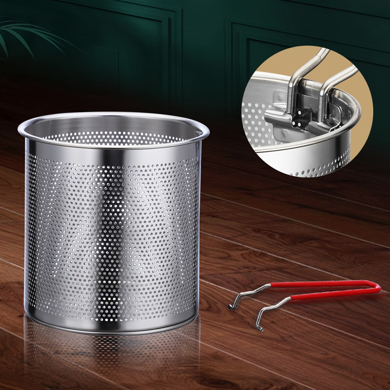 Premium Stainless Steel Frying Pan with Perforated Basket - Induction Ready, Non-Stick, Easy Food Release, Perfect for French Fries, Crispy Fried Chicken, Rice Pops, and Chicken Nuggets Cooking, Durable, Heat Resistant, and Easy to Clean
