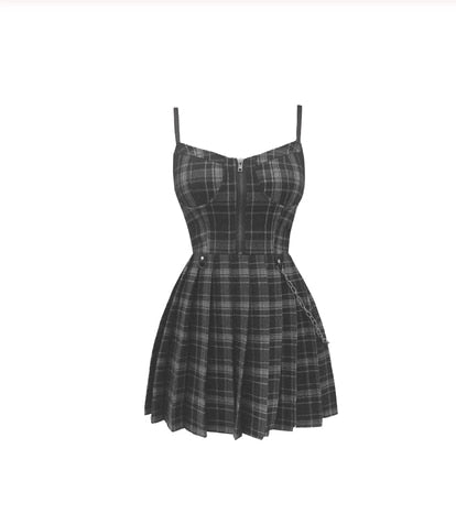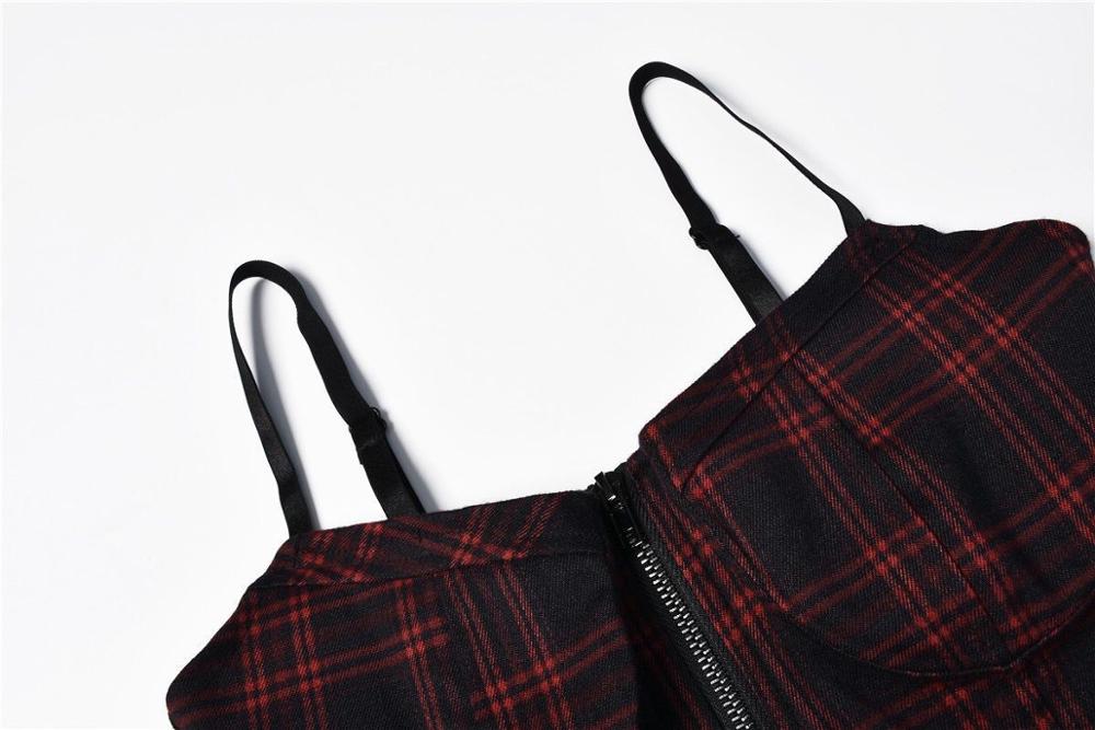 Sixsr Ruibbit Spring Autumn Preppy style Gothic Girls Sexy Sling Dress Red Balck Pleated Plaid Women Sleeveless Mini Short Dresses