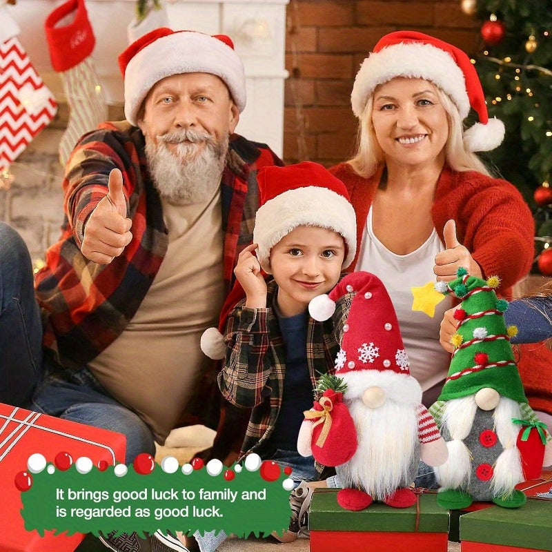 Set of 2 Christmas Gnome Plush Decorations, Xmas Farmhouse Tiered Tray Decor-Red Green Handmade Scandinavian Tomte - Home Tabletop Elf Ornaments Christmas Home Decor