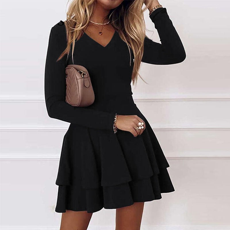 Sixsr Sexy Women V neck Pleated Party Dress Spring Solid Casual Long Sleeve Loose Dress Elegant Autumn Office Lady Mini Dress Vestidos