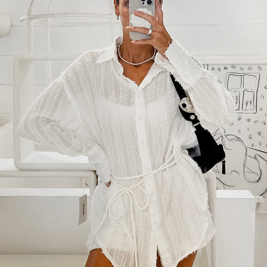 SIXSR 2025 Spring and summer New pajamas jacquard long-sleeved cardigan shorts two-piece set white casual women's loungewear wholesale