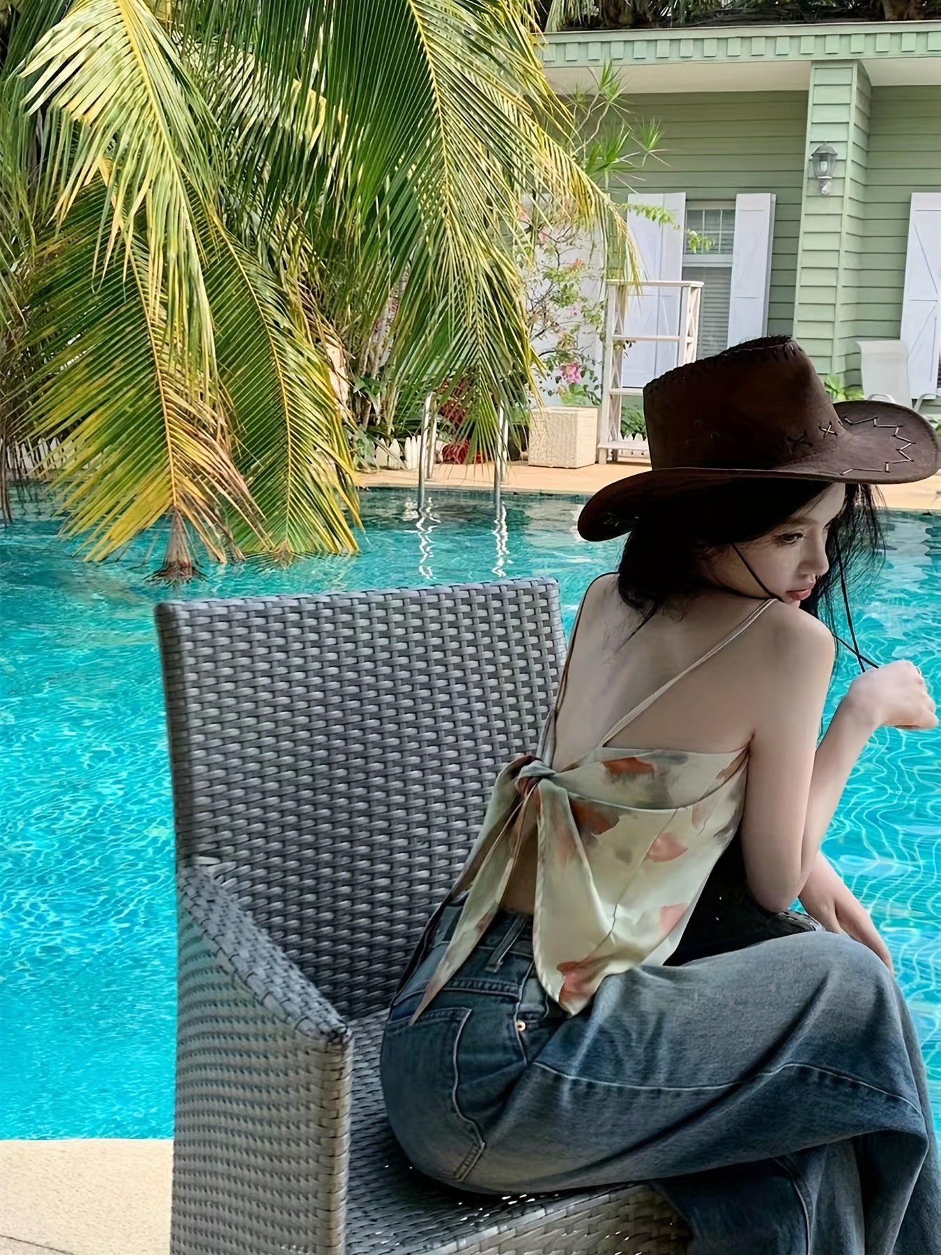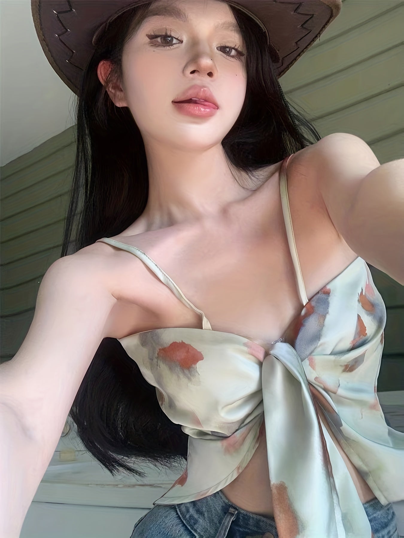 Sixsr All Over Print Knot Front Cami Top, Casual Summer Sleeveless Top, Women's Clothing