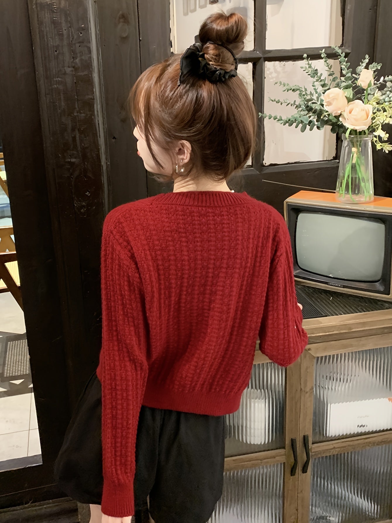 Sixsr Asymmetrical Solid Knit Cardigan, Casual Long Sleeve Sweater With Buttons, Women's Clothing