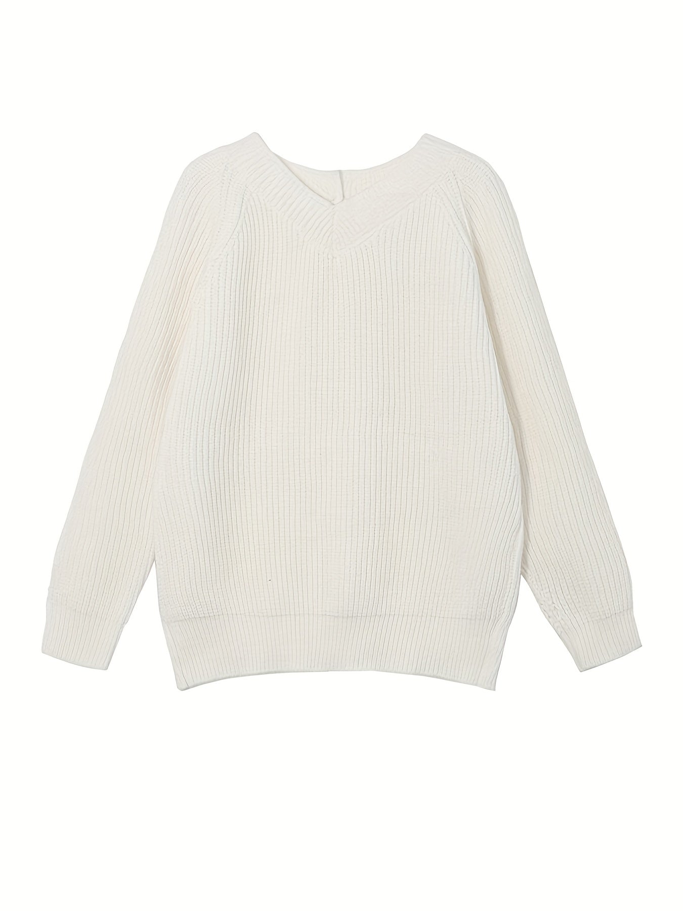 Sixsr Back Button V Neck Sweater, Casual Long Sleeve Sweater For Fall & Winter, Women's Clothing