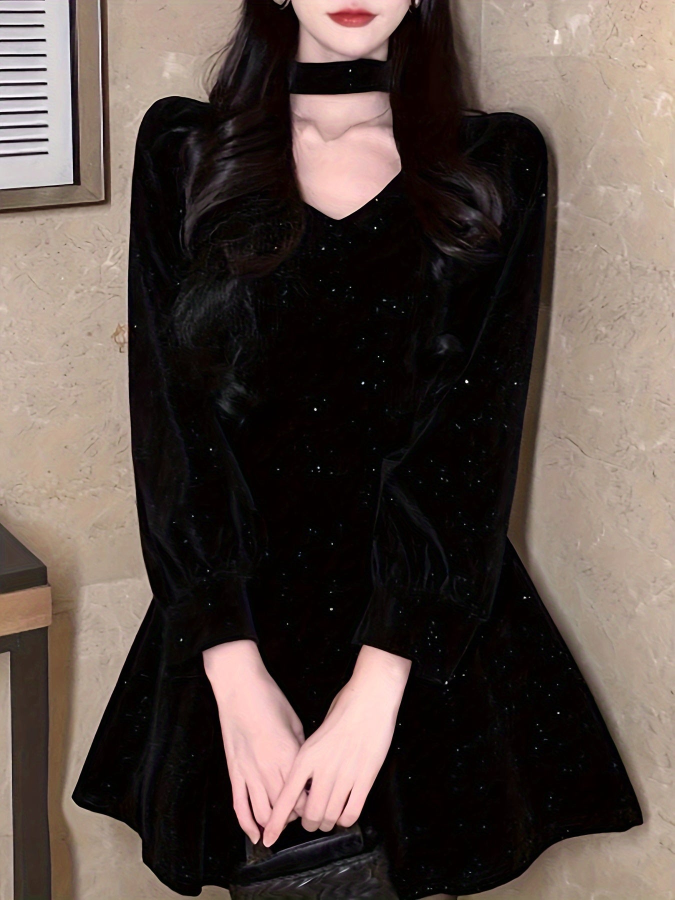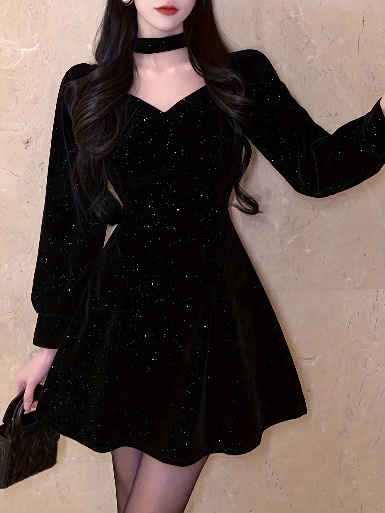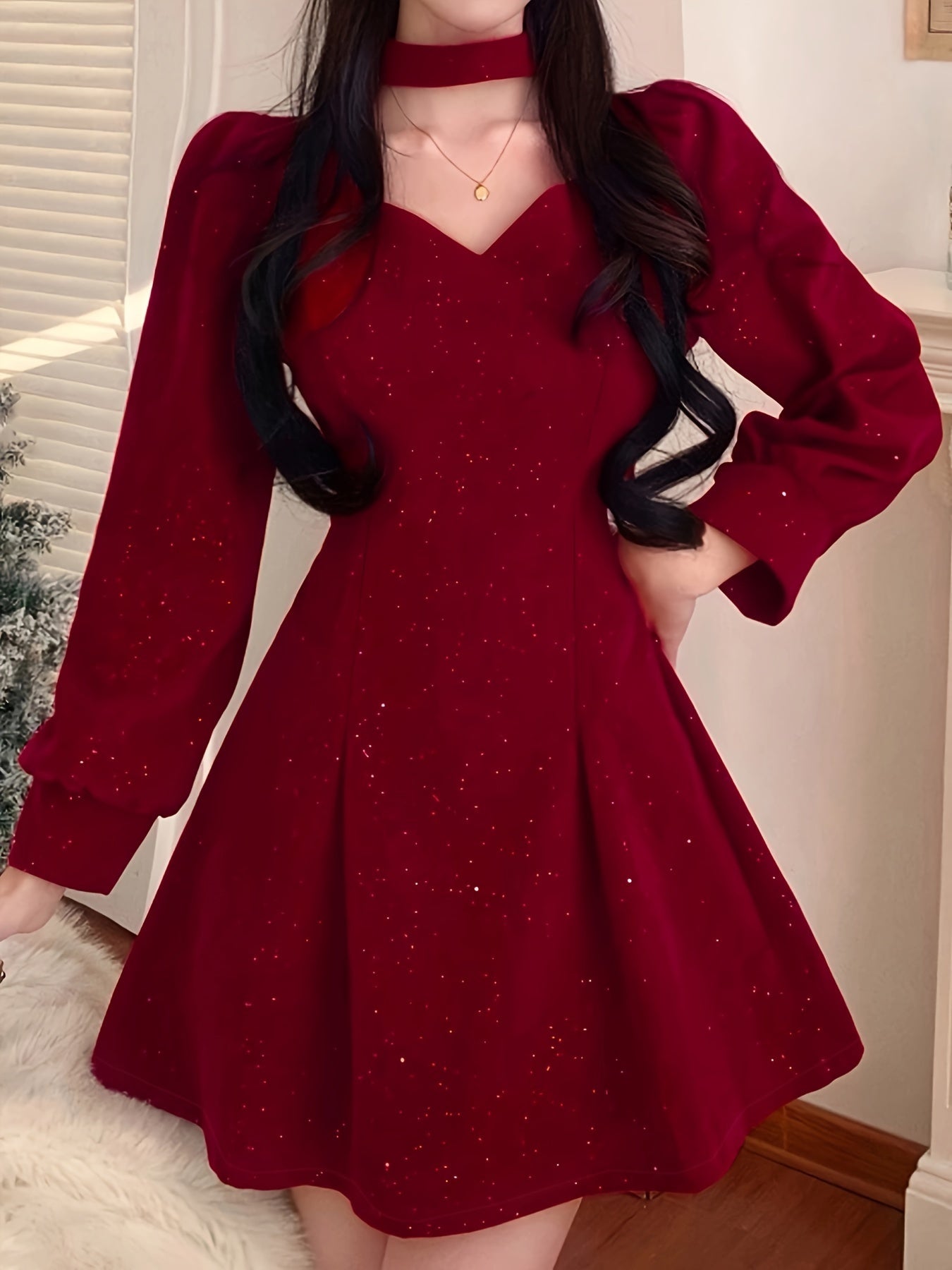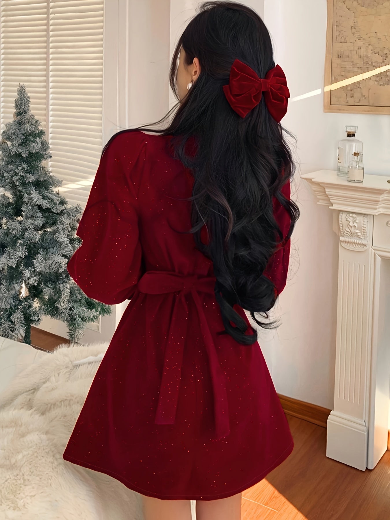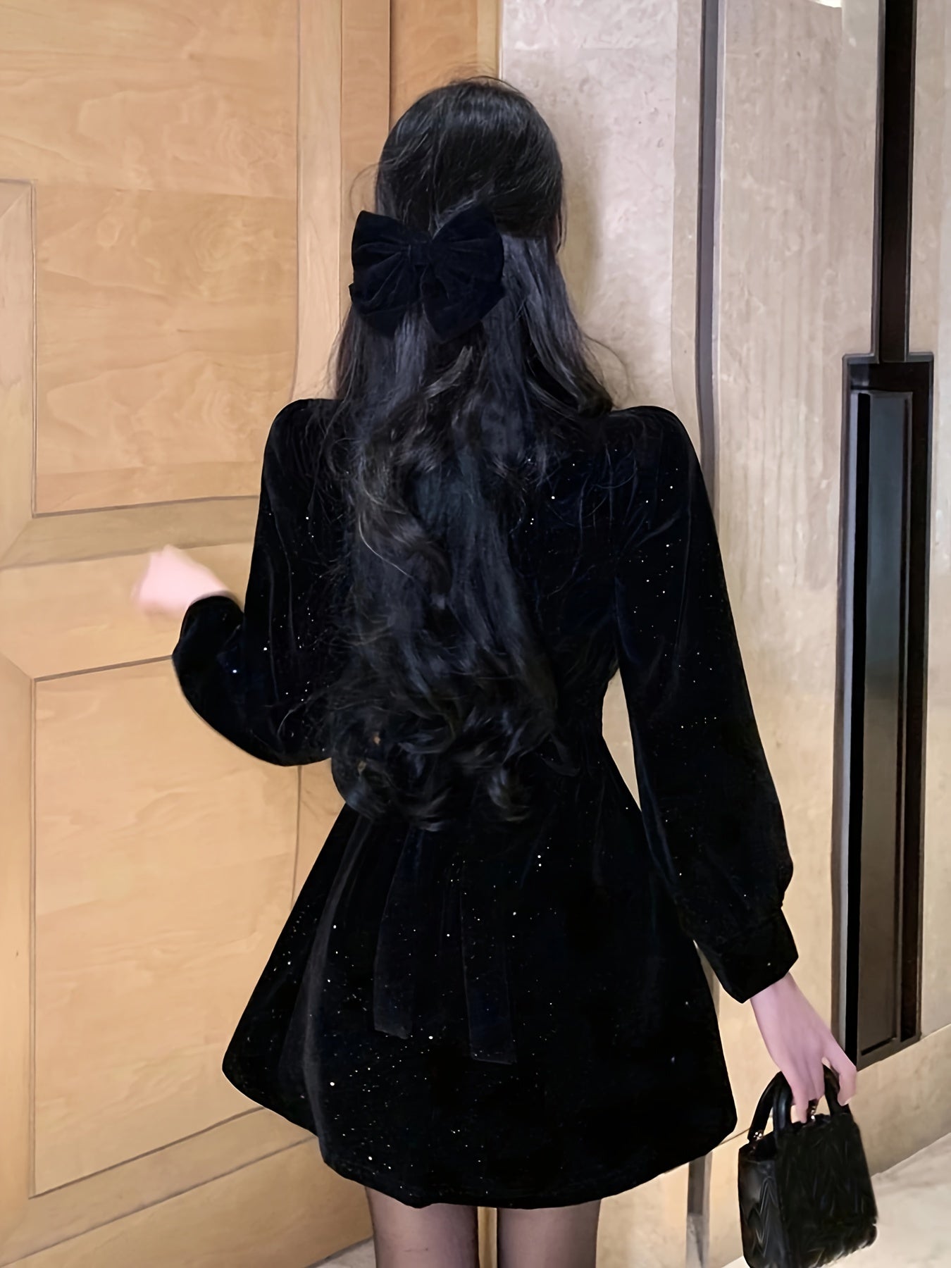 Sixsr Bow Decor Cut Out Dress, Chic Long Sleeve A-line Dress, Women's Clothing