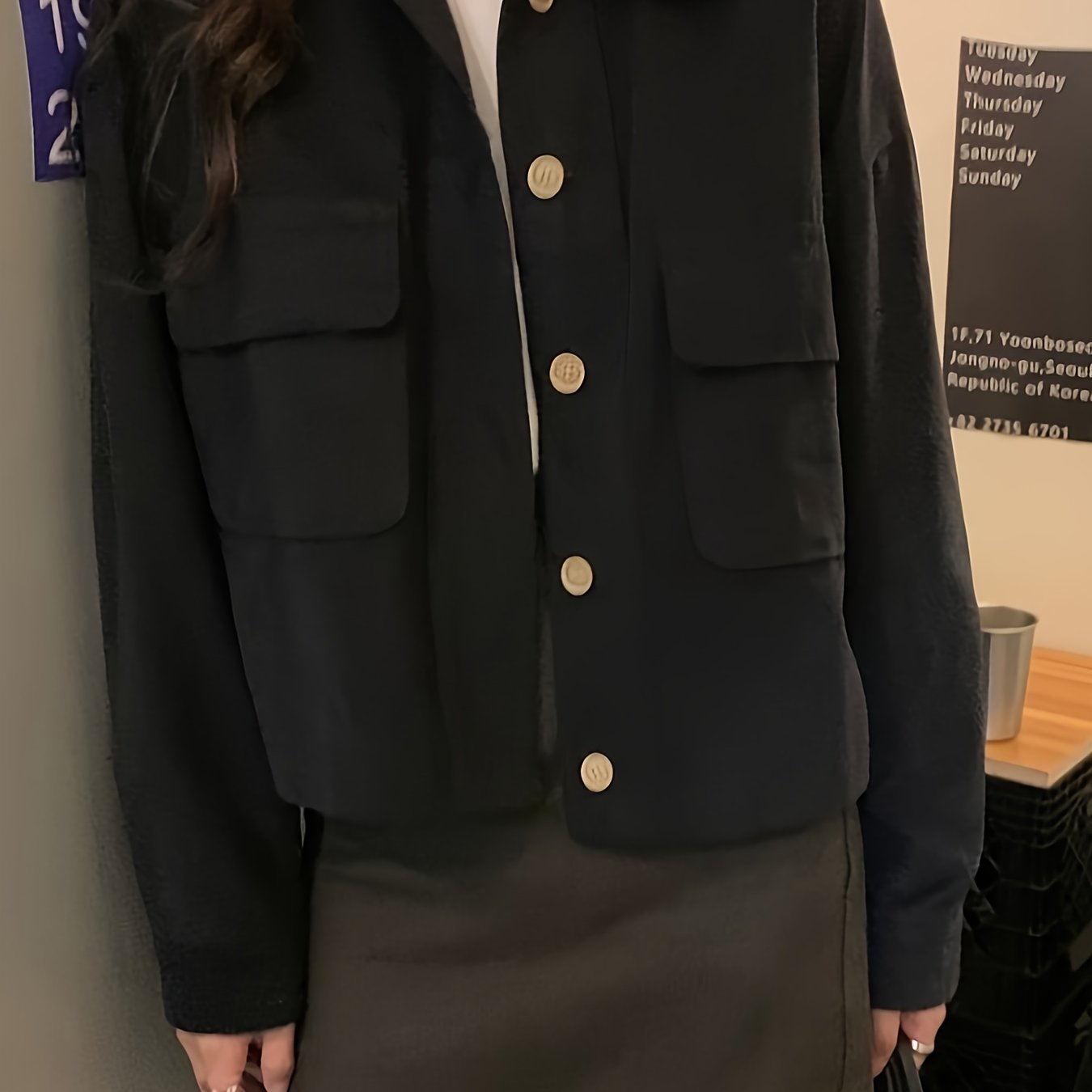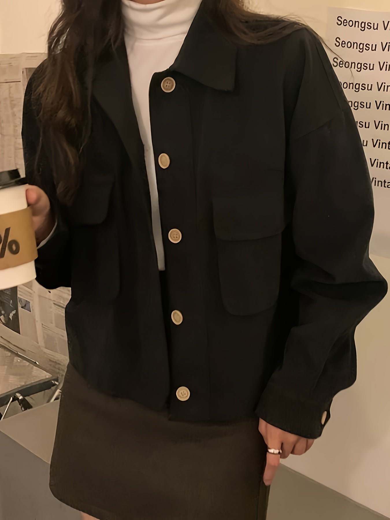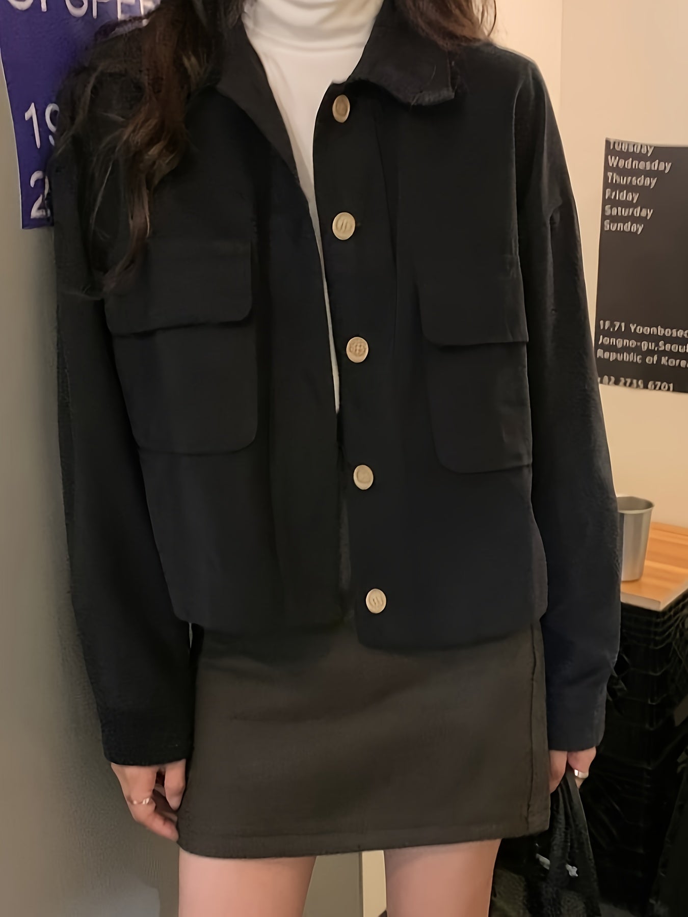 Sixsr Button Front Solid Jacket, Casual Long Sleeve Vintage Outerwear, Women's Clothing