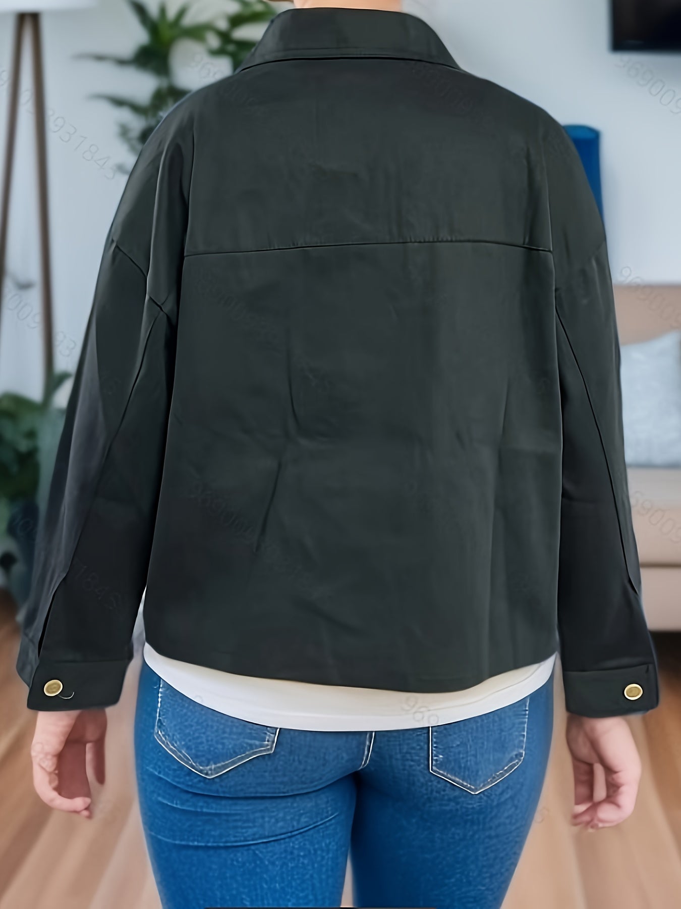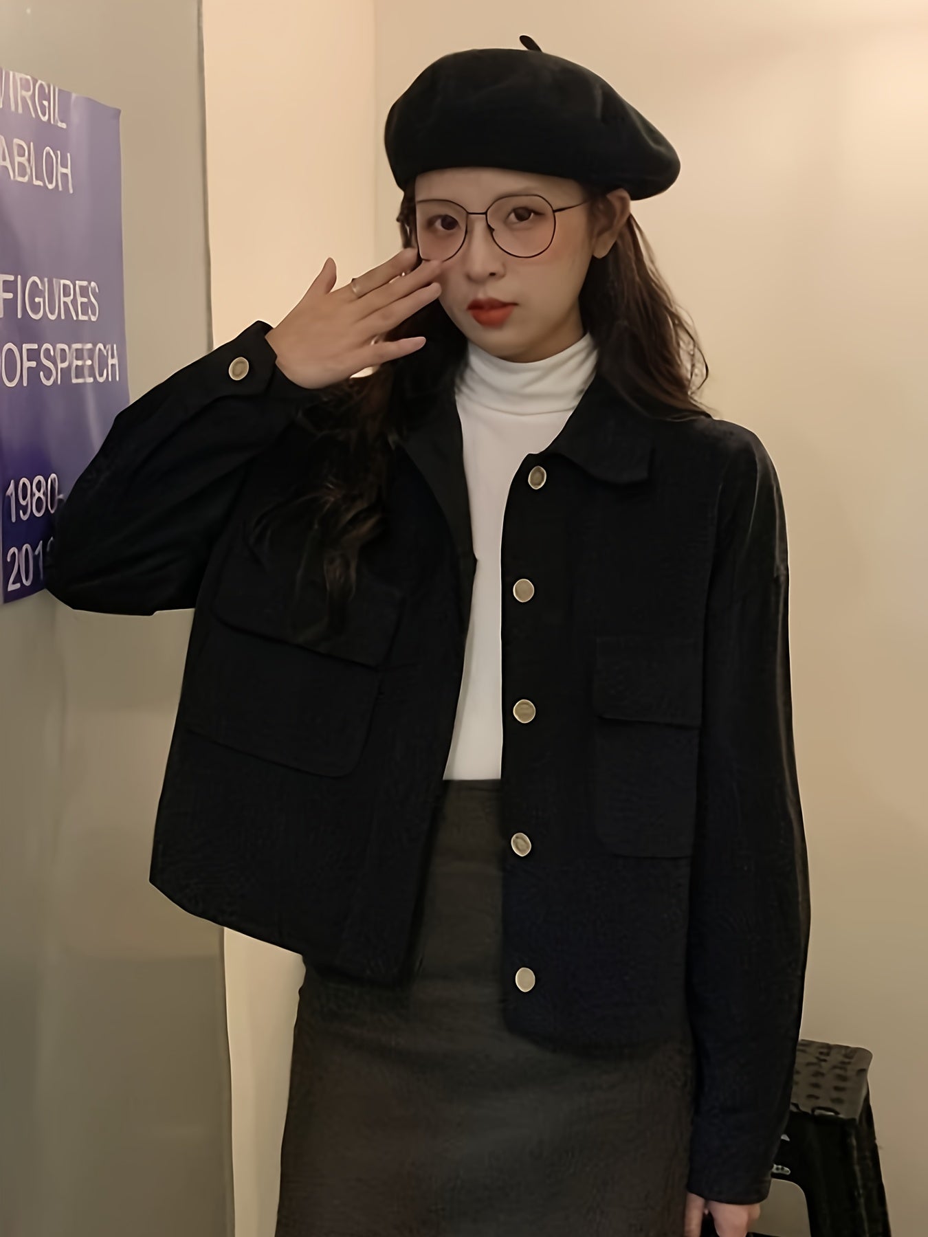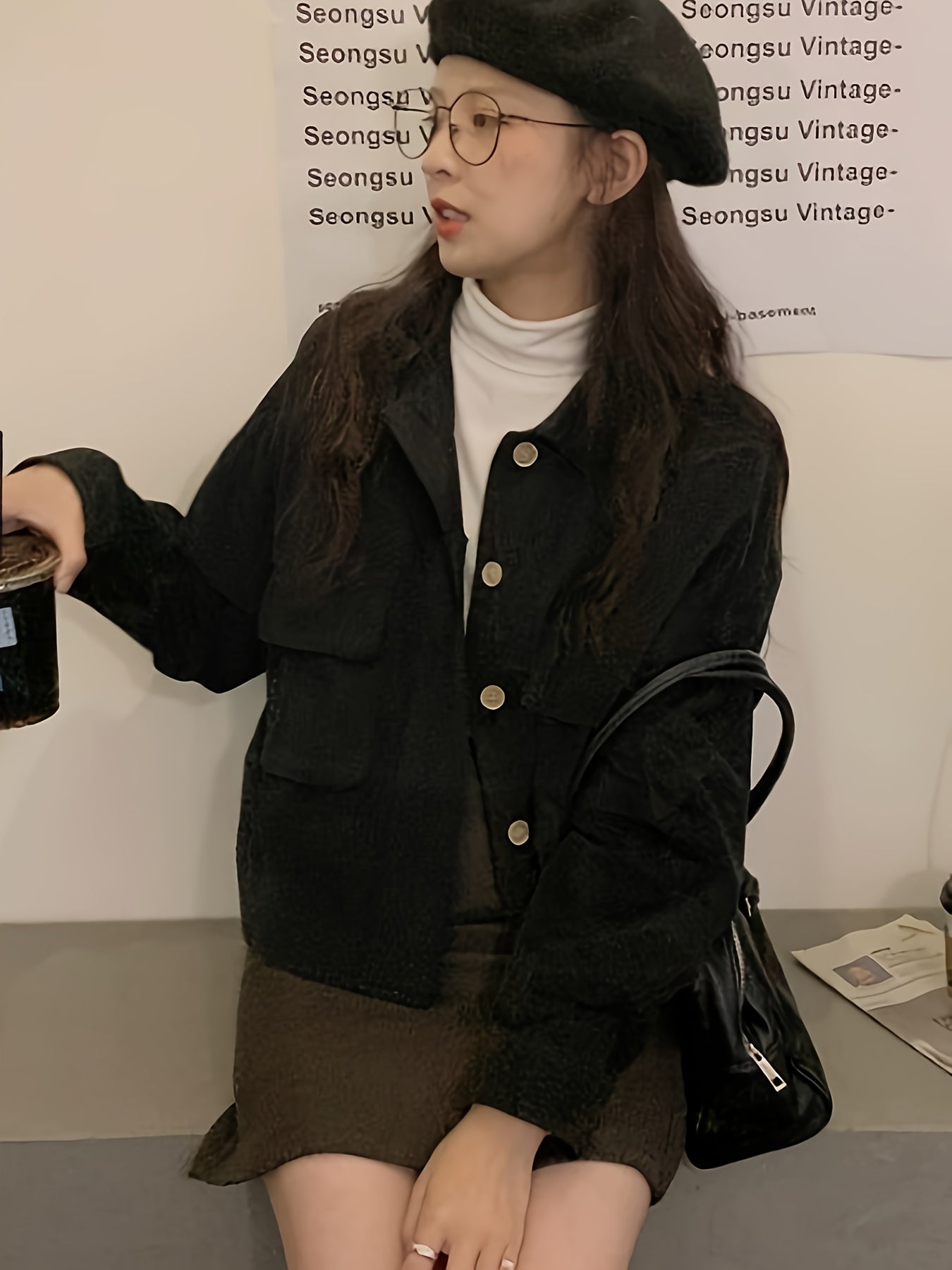 Sixsr Button Front Solid Jacket, Casual Long Sleeve Vintage Outerwear, Women's Clothing