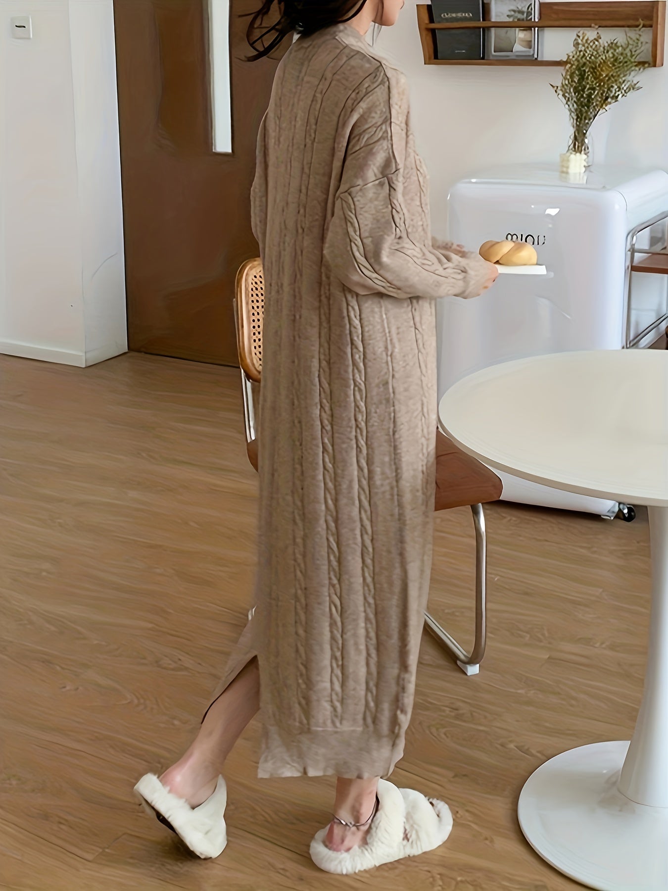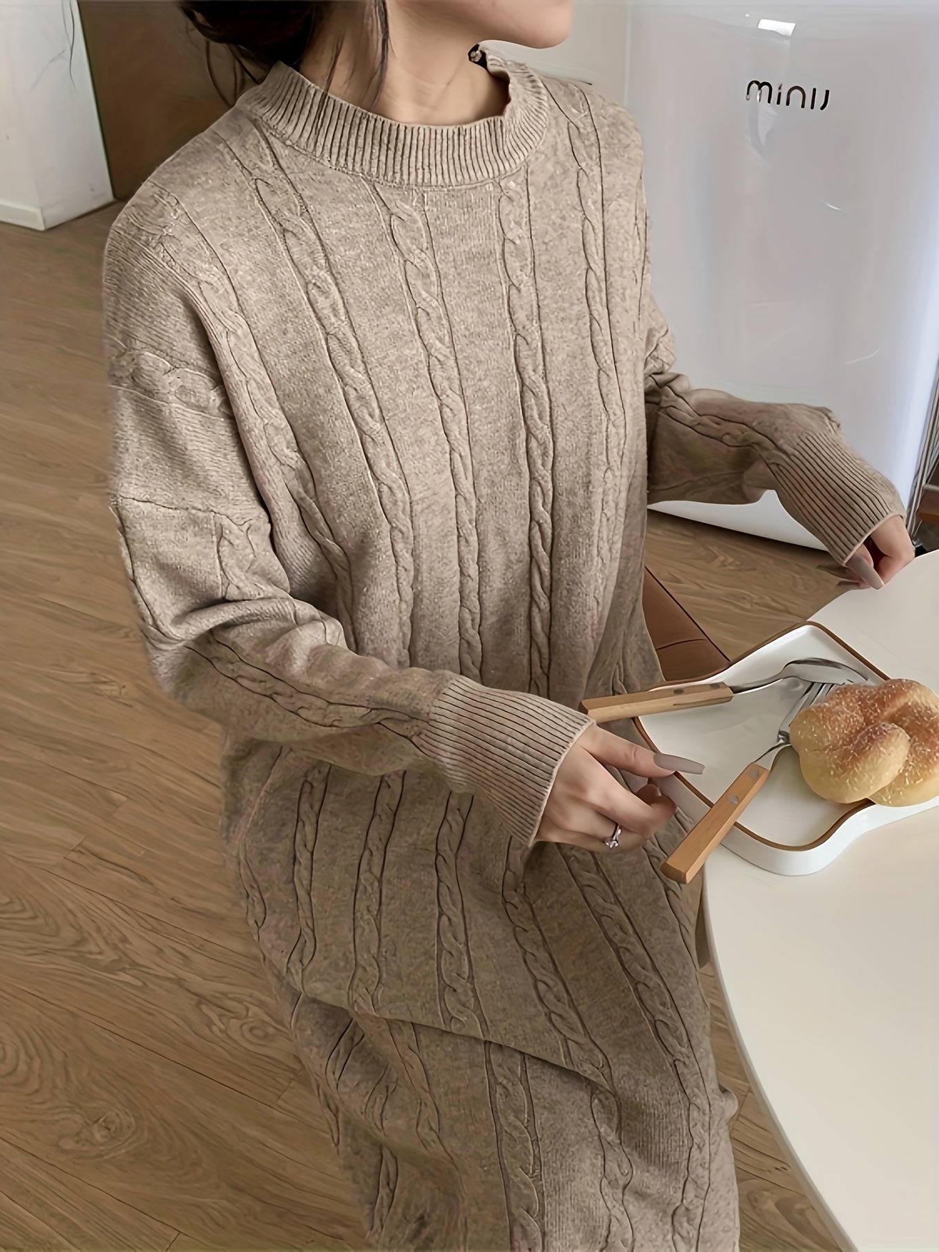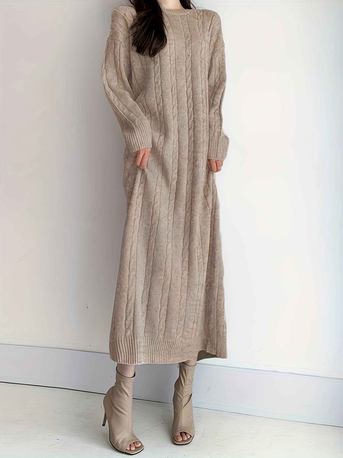 Sixsr Cable Knit Maxi Dress, Elegant Crew Neck Long Sleeve Dress, Women's Clothing