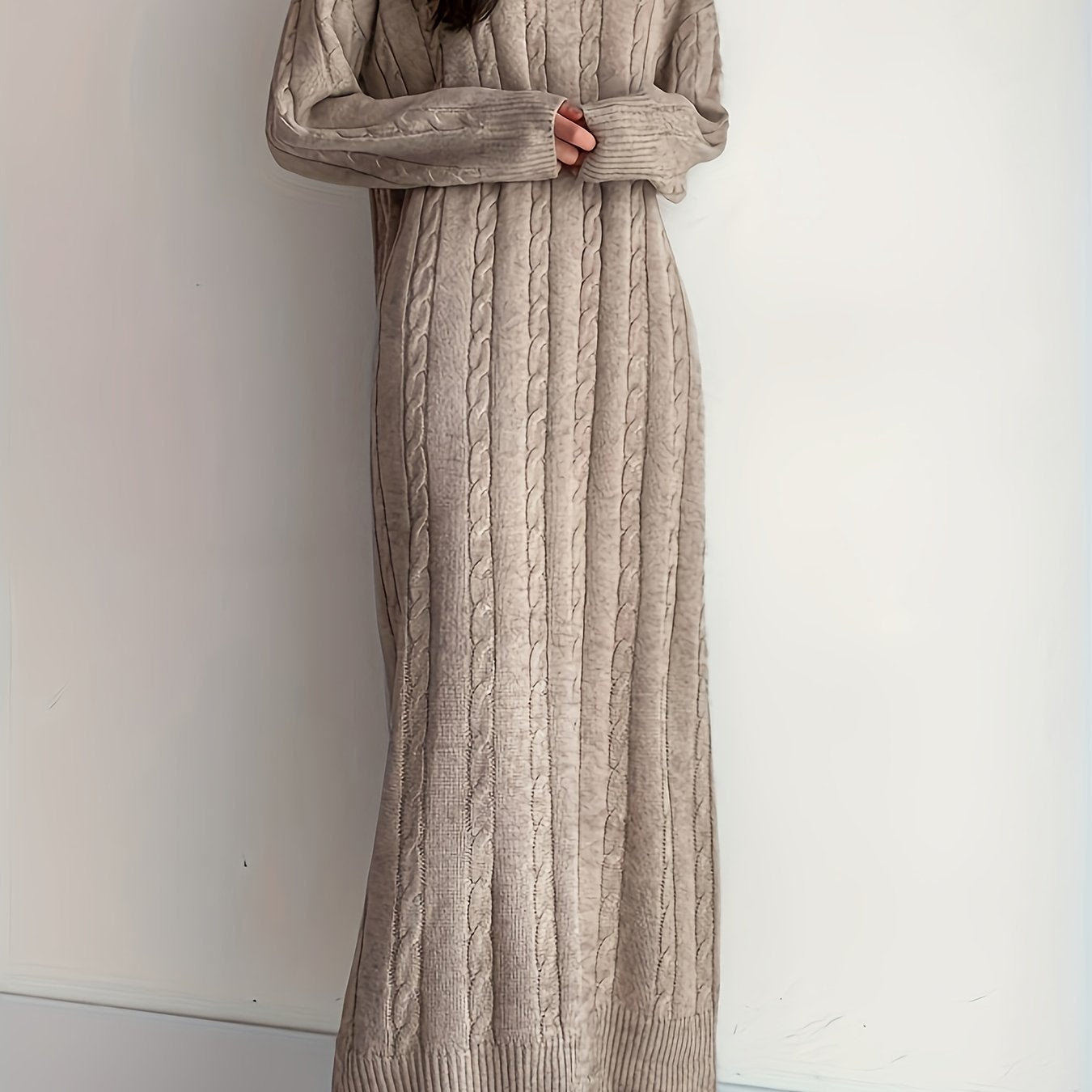 Sixsr Cable Knit Maxi Dress, Elegant Crew Neck Long Sleeve Dress, Women's Clothing
