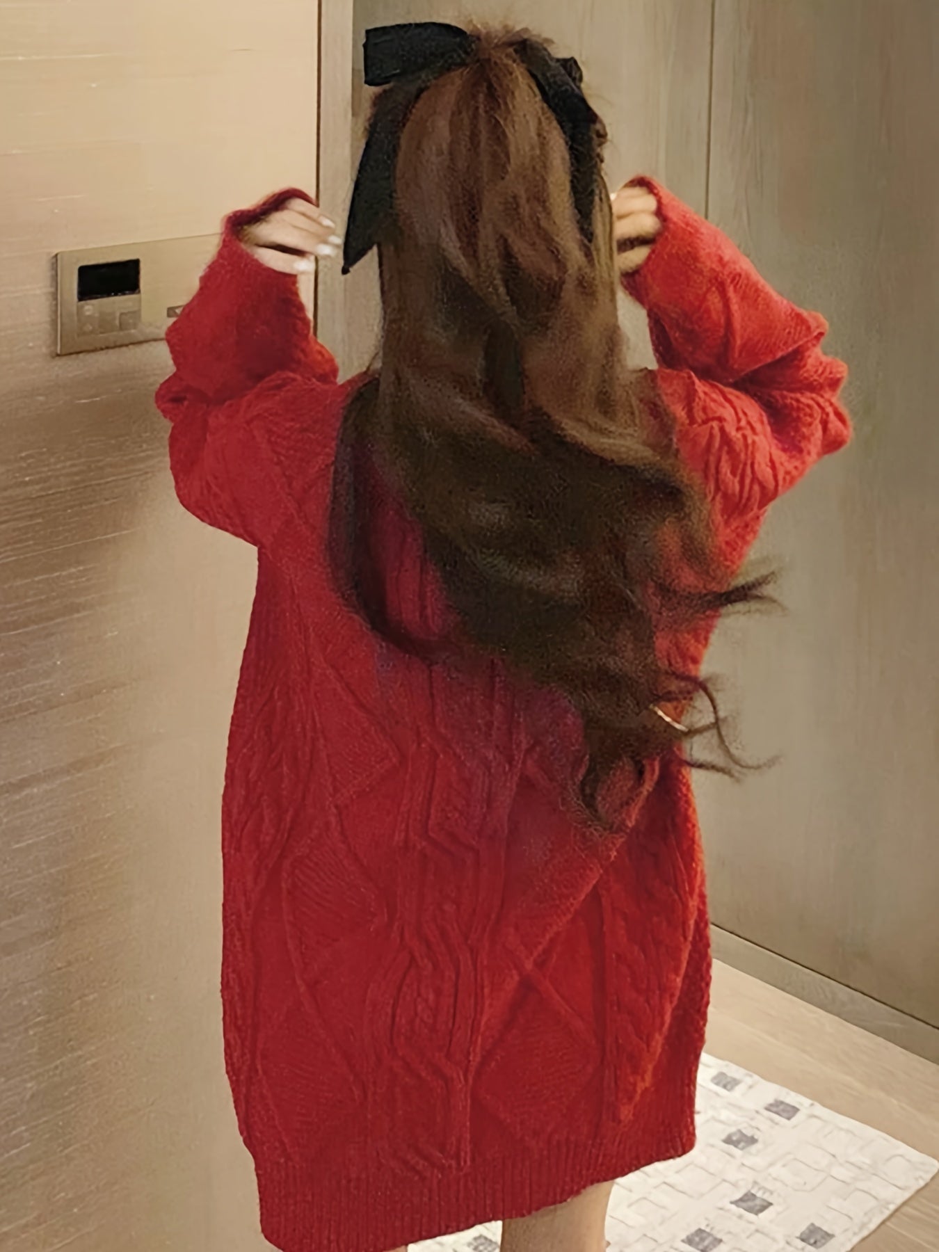Sixsr Cable Twist Knit Sweater, Casual Long Sleeve Crew Neck Pullover Sweater For Fall & Winter, Women's Clothing
