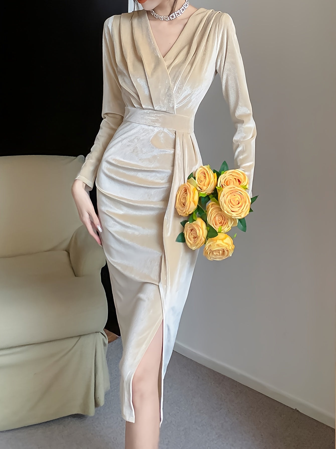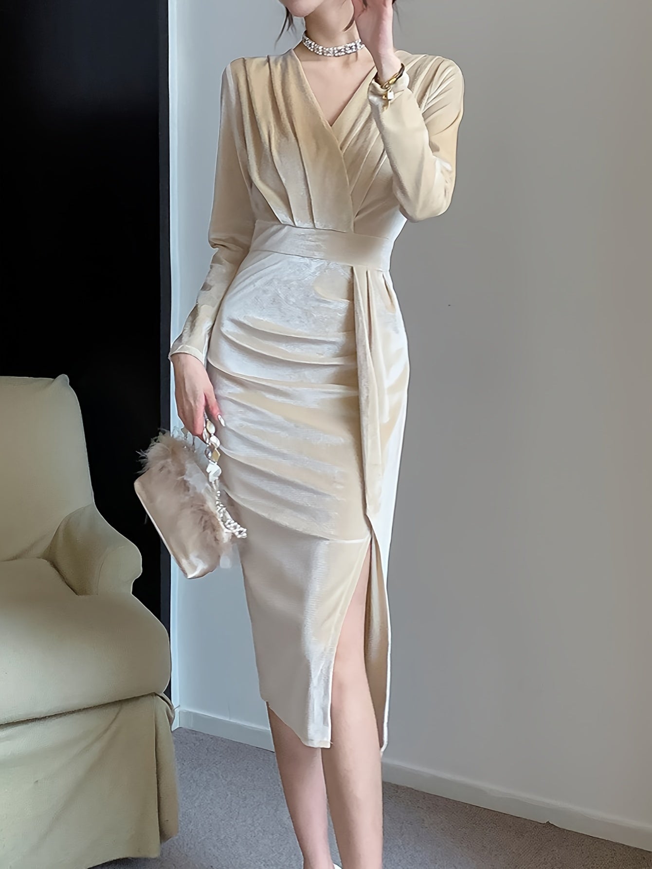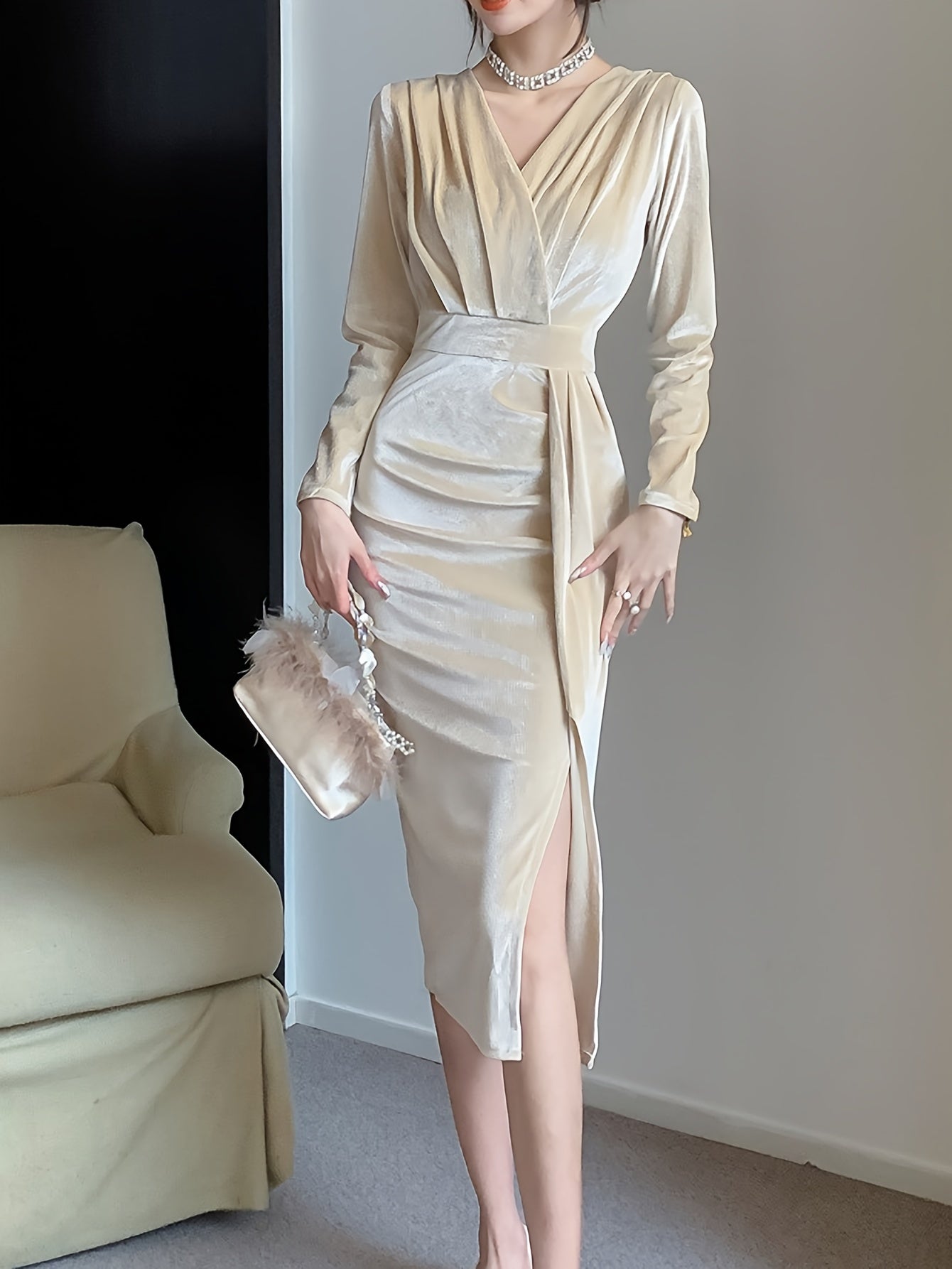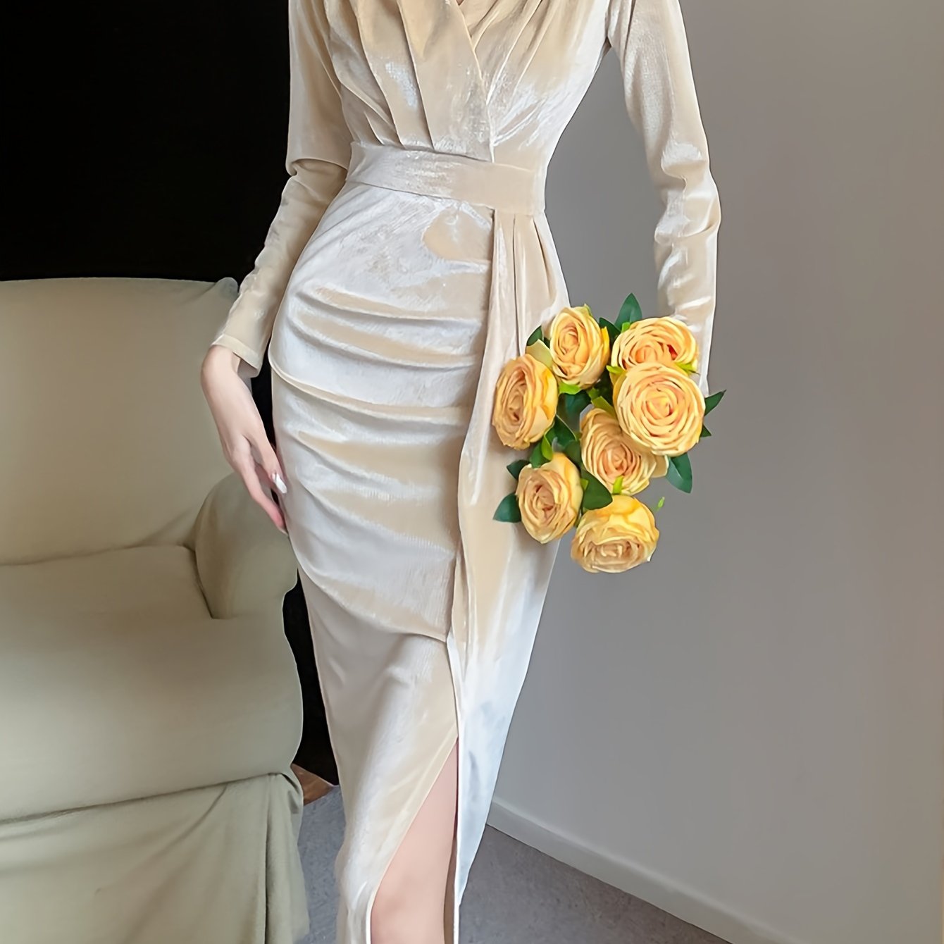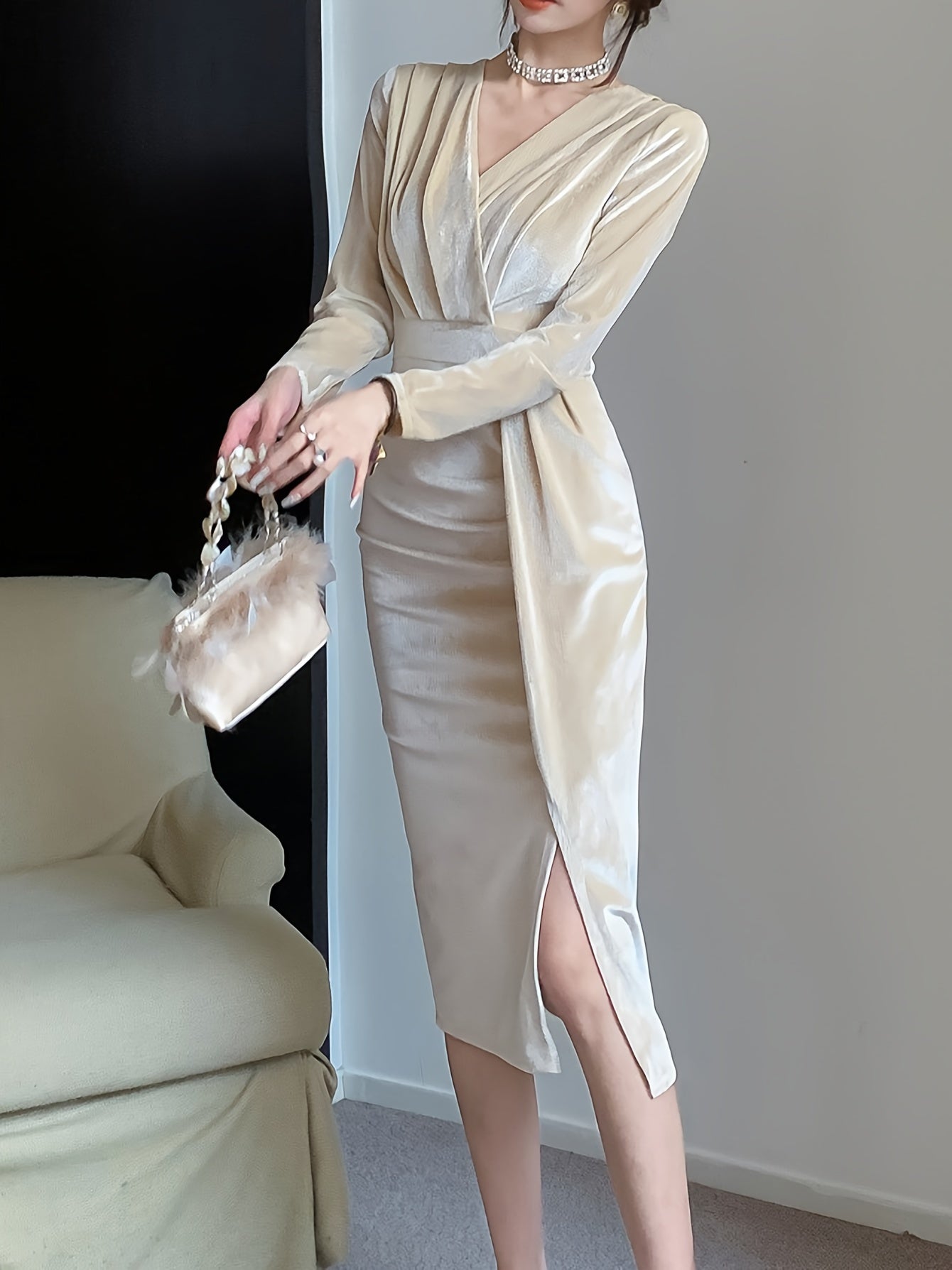Sixsr Cocktail Velvet Dress, Long Sleeve Elegant Dress, Women's Clothing
