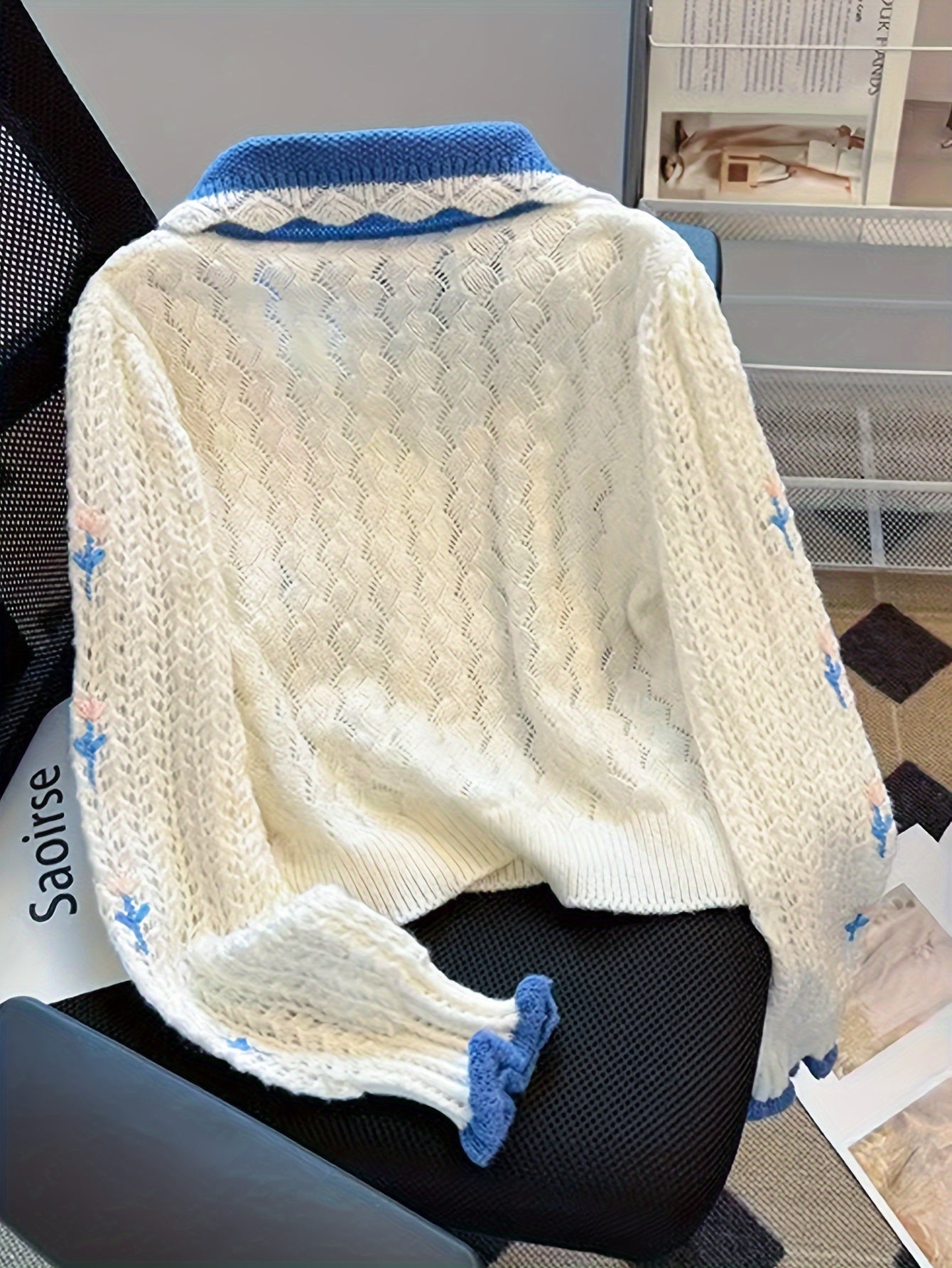 Sixsr Color Block Button Front Cardigan, Long Sleeve Pointelle Knit Cardigan, Women's Clothing