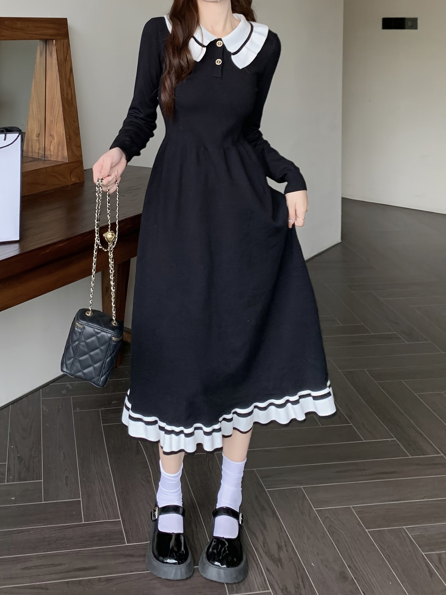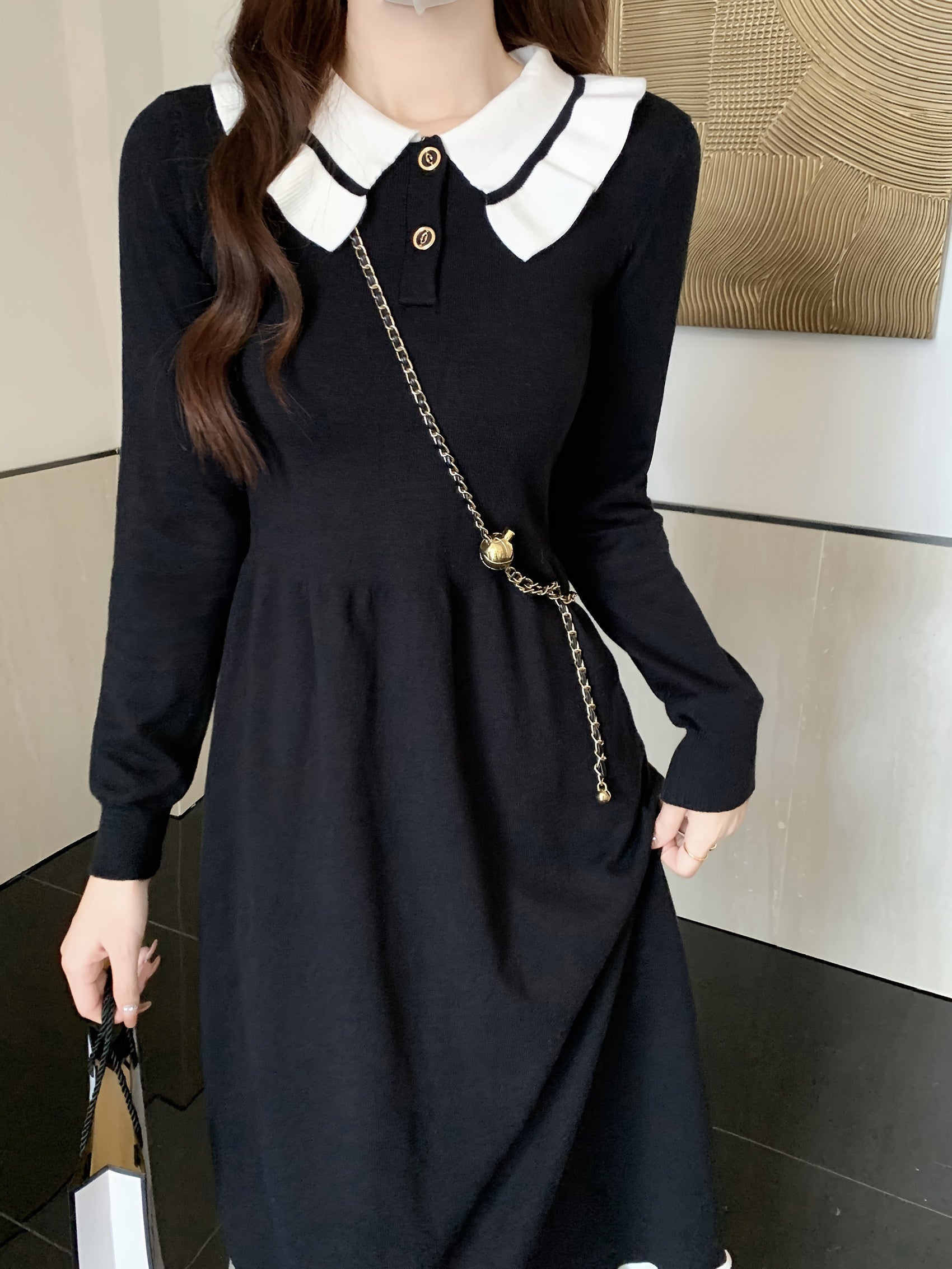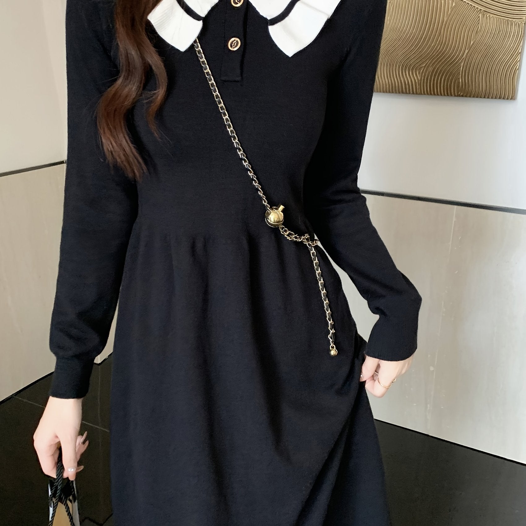 Sixsr Color Block Elegant Dress, Button Up Long Sleeve Dress For Spring & Fall, Women's Clothing